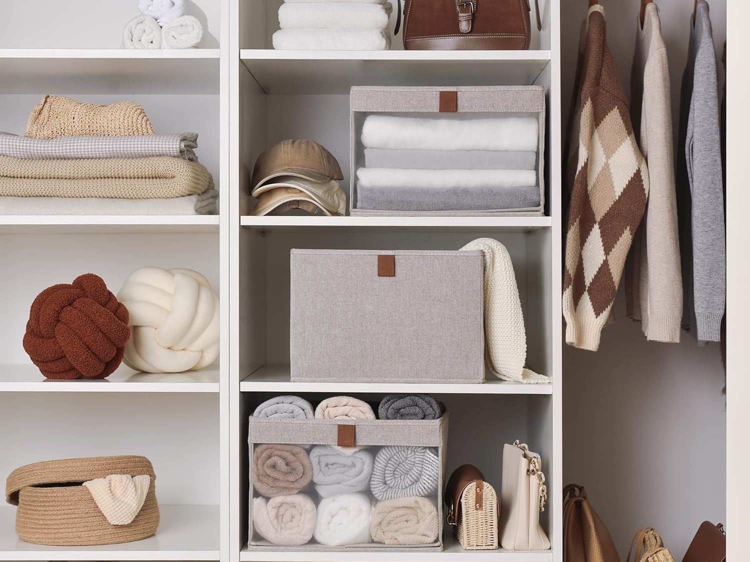 StorageWorks Closet Storage Bins, Extra Large Storage Baskets with Clear Window and Handles, Foldable Fabric Organizer for Clothes, Shelves, Brown and Beige, 3 Pack