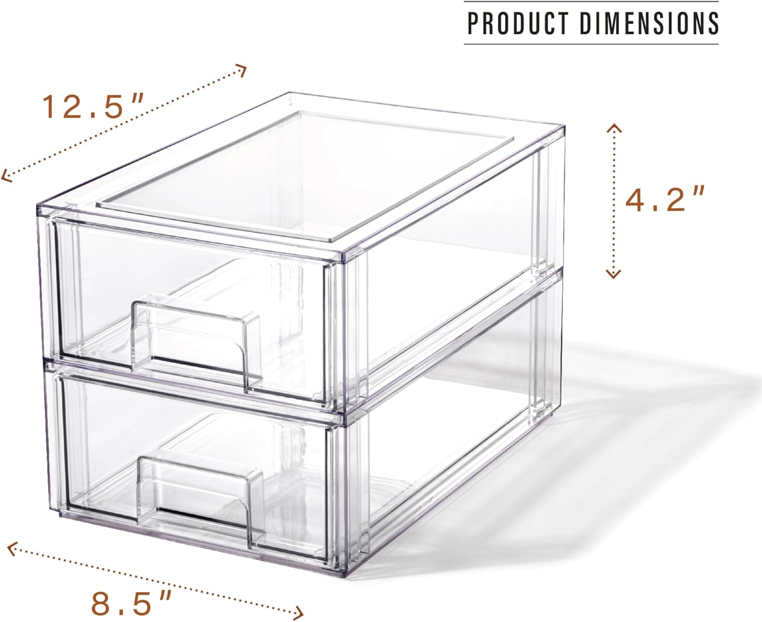 BINO | Stackable Storage Drawers, Small - 2 Pack, Clear | THE CRATE COLLECTION | Storage Bins With Drawers | Bathroom Organizers | Under Sink Organizer | Vanity Cabinet Home Organization