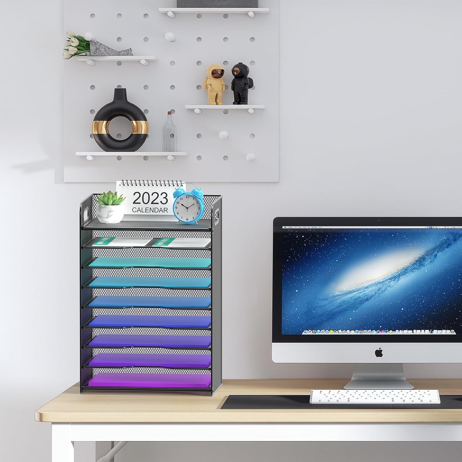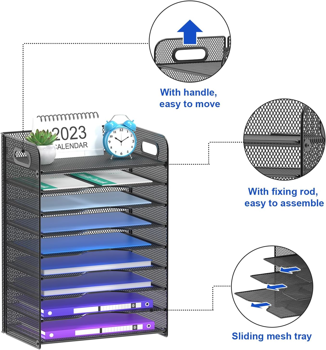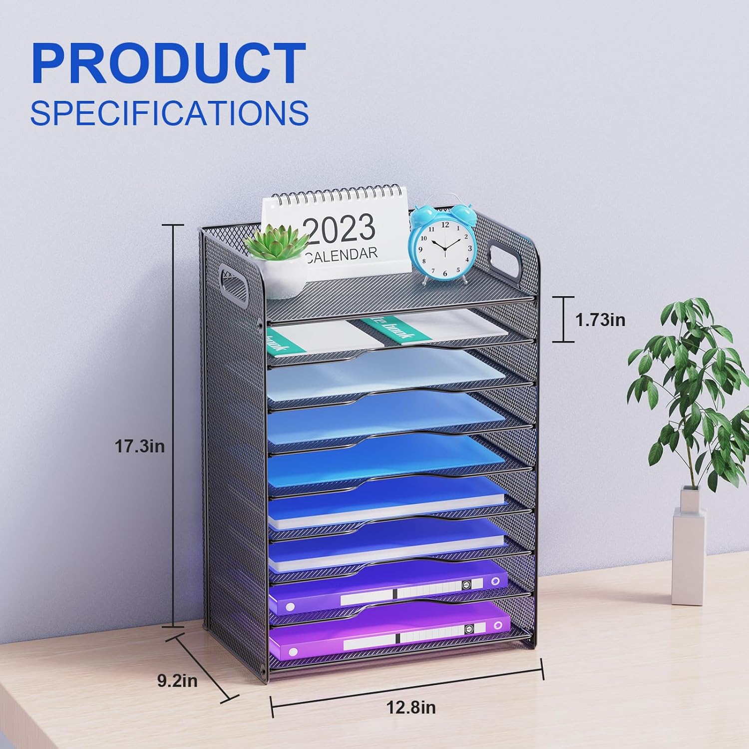 - 【9-Tiered Letter Tray】 : 9 Tier sliding trays are perfect for storage all your A4/letter sized papers and file folders,the width is 9.4 inch, which allows you can place the papers both vertically and horizontally.