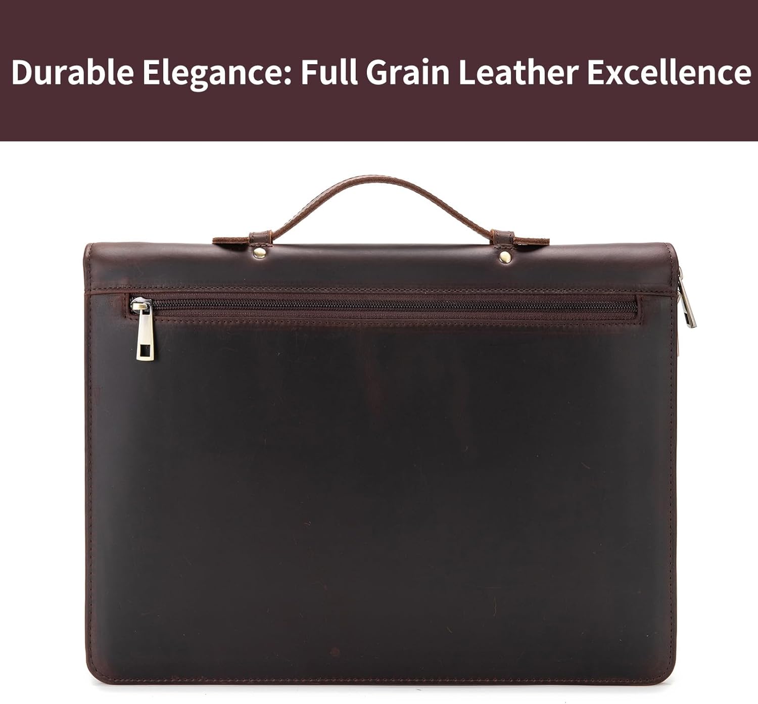 - Enhanced Storage and Convenience: Stay organized with our leather portfolio featuring a dedicated side pocket for tablets or notebooks. Easily access your phone in the specially crafted cell phone holder, and keep your earphones tangle-free in the integrated earbud holder. The portfolio includes an exterior pocket for quick access, a hidden handle for convenient carrying, and a secure dual YKK zipper enclosure to protect your essentials.