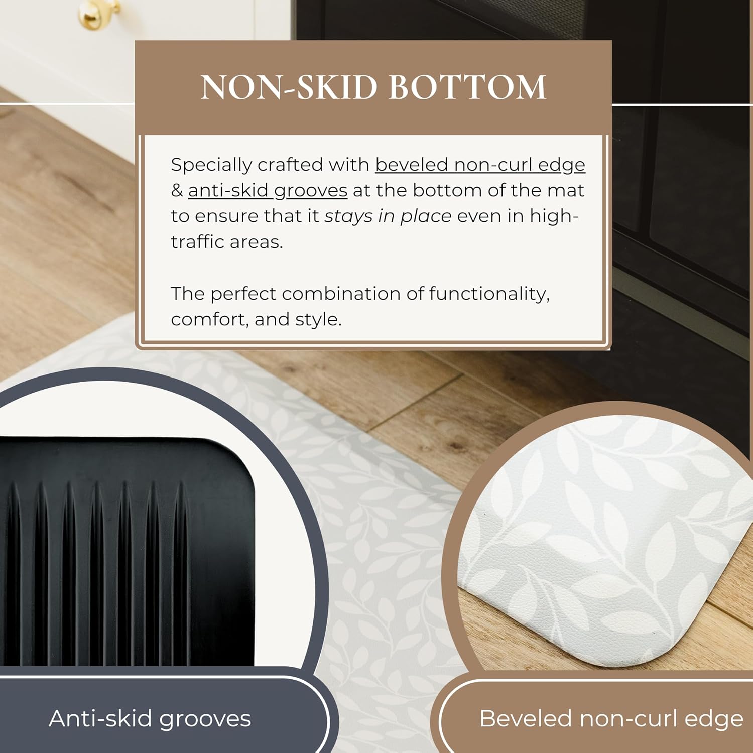 - DESIGNER ELEMENT: Elevate the aesthetics of your home with our beautifully curated anti-fatigue kitchen mats. With practical and timeless designs, these premium standing mats seamlessly blend beauty with functionality elevating your home, standing desk, work station, and any space where you stand.