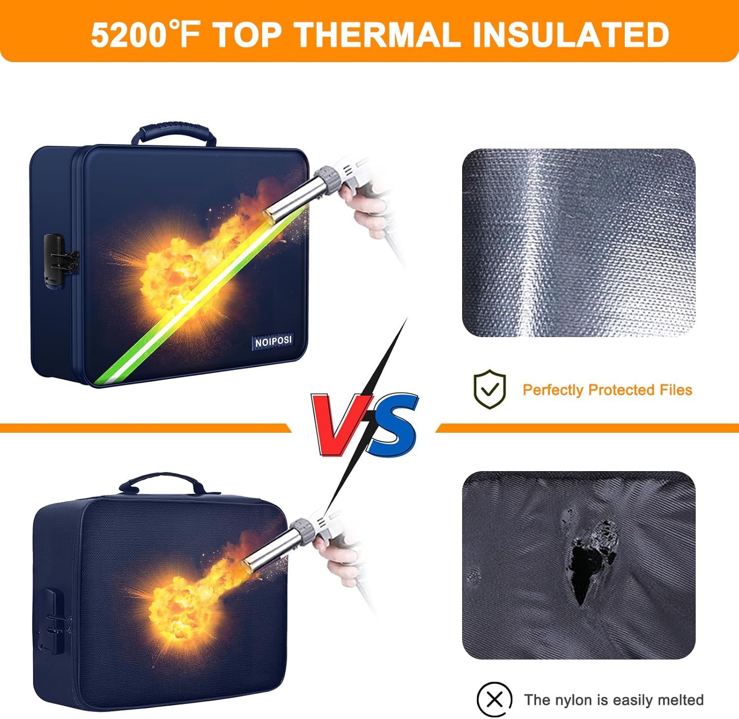 Noiposi Document Organizer with 5200℉ Heat Insulated,Waterproof and Fireproof Document Box,Portable Home Travel Safe Storage Box for Important Documents,File and Birth Certificate,Blue