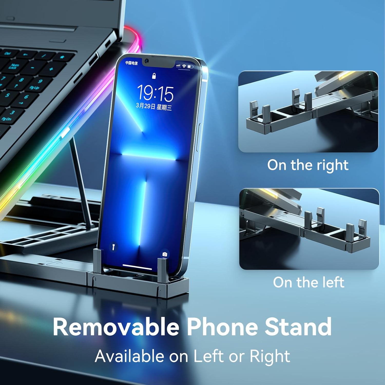 - 【Ergonomic 7-Height Adjustment & Phone Holder】 Reduce neck and eye strain with 7 adjustable height settings, offering optimal viewing angles. The built-in hideable phone holder works on both sides, providing convenient multitasking without occupying your hands.