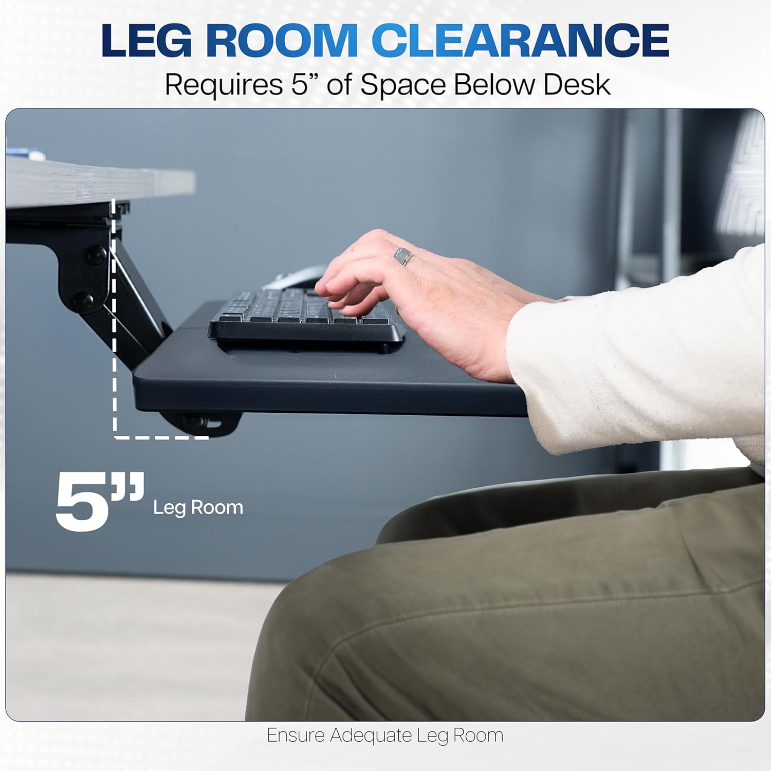 - Ergonomic Keyboard and Mouse Tray: Installs underneath a standard desk for comfortable typing angles --Patent Pending--