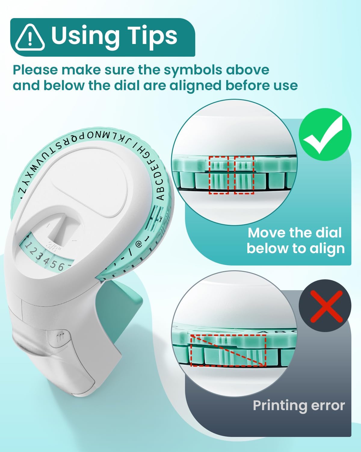 - Humanized Design:The 3D embossing label printer is designed with a special built-in cutout, which is easy to use for both the elderly and children. Provides you with a pleasant hands-free experience. Turn the dial to select the cutout and cut the label with one press: each embosser label comes with pre-cut dividers and peel-off dashes, the simple label peel-off design greatly enhances your experience