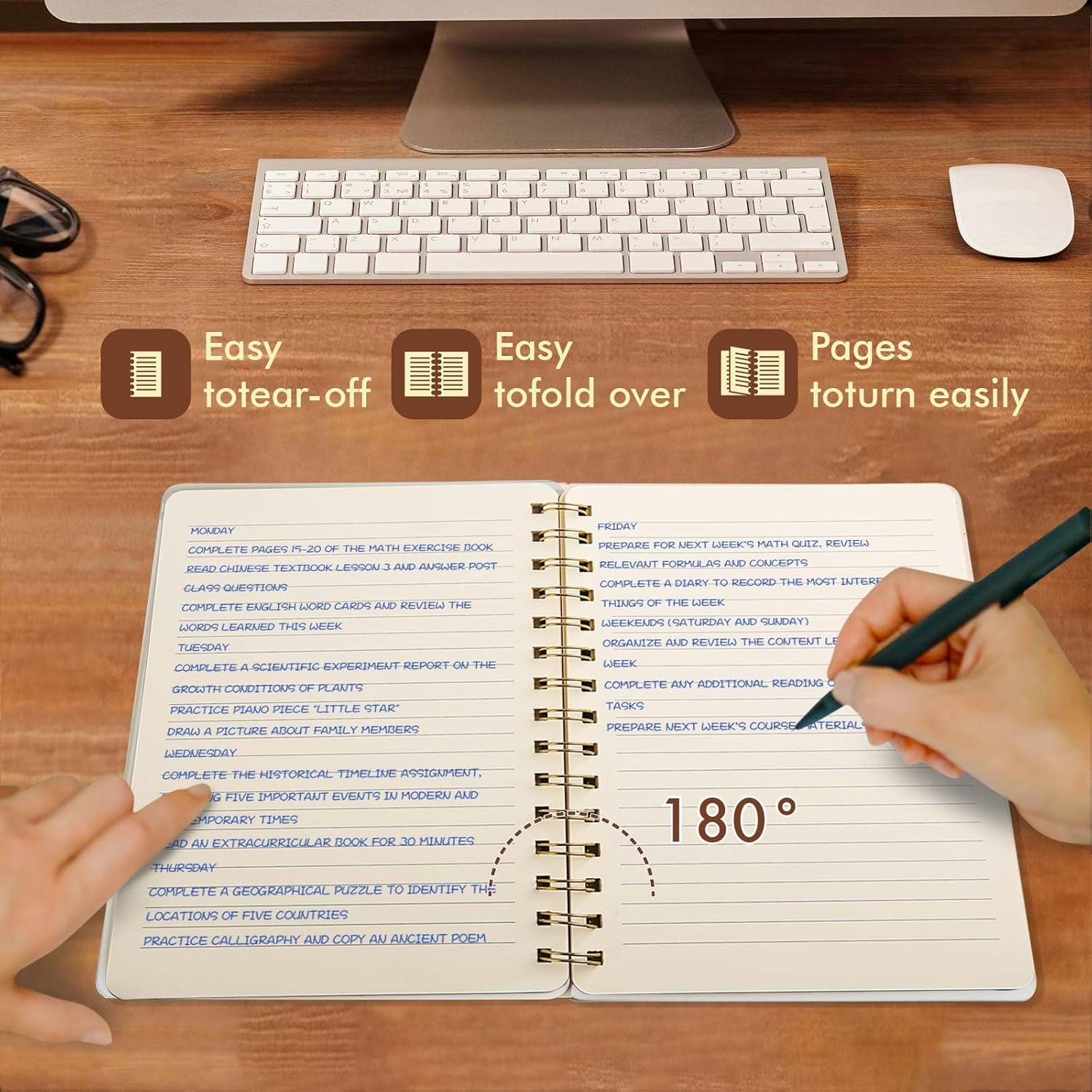 - Durable and Elegant Design: The Oneirom Spiral Notebook features a premium PU leather cover, twin-wire binding provides a sturdy construction, allowing the notebook to lay flat for easy writing. The water-resistant cover protects your notes from spills and damage, making it a reliable choice for daily use