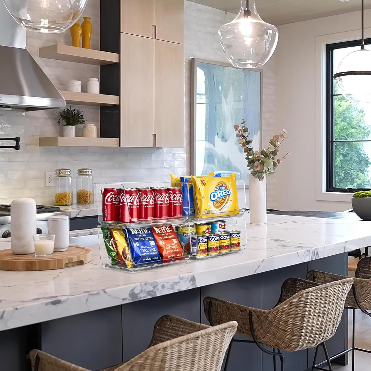 - Open Front Design: Open style front provides easy grab n’ go access - Sorbus Stackable Clear Storage Bins save time and hassle of searching through a cluttered refrigerator, freezer, or pantry cabinet - Use as pantry stackable bins, clear plastic stackable storage bins for under the sink, open stack bins, and more