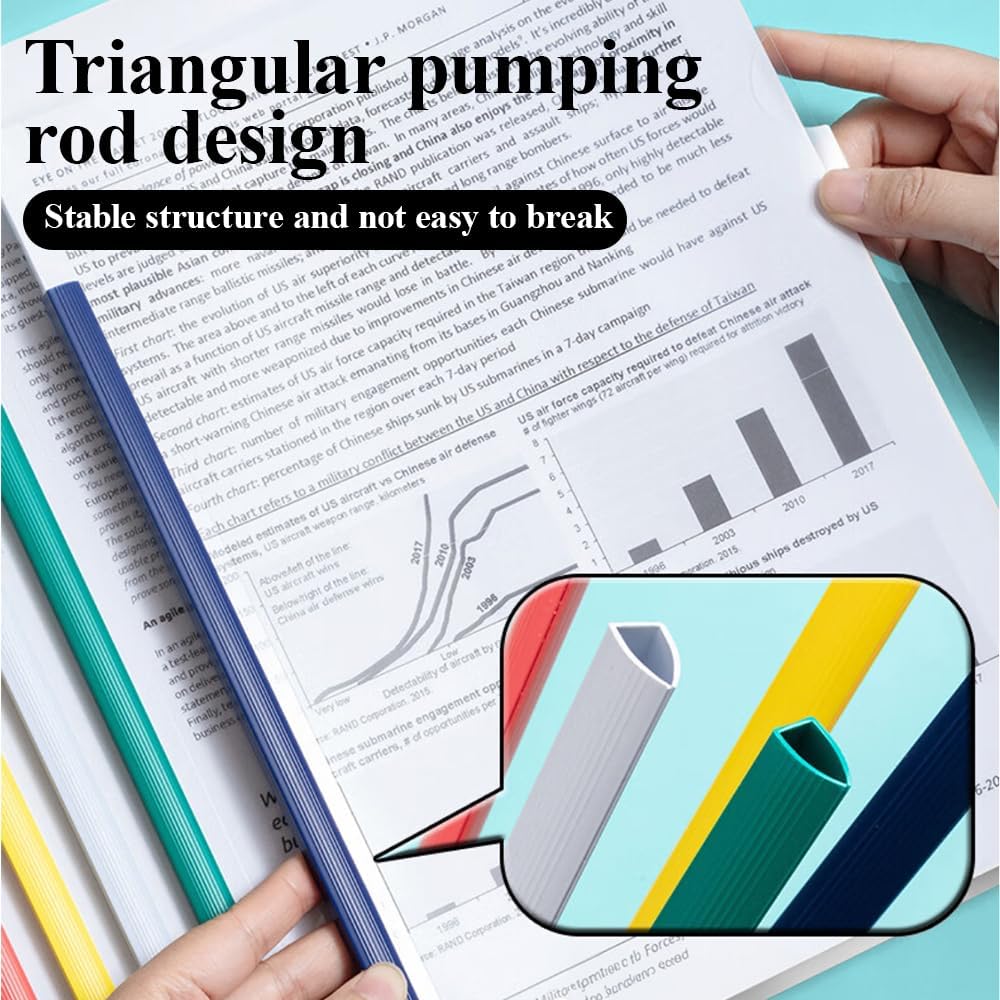 - 10 Pack Report Covers: Each set includes 10 report covers with a sliding bar in a vibrant color (The color of each set of sliding bars is the same & random). The report covers are made from durable polypropylene material, ensuring longevity and protection for your documents.