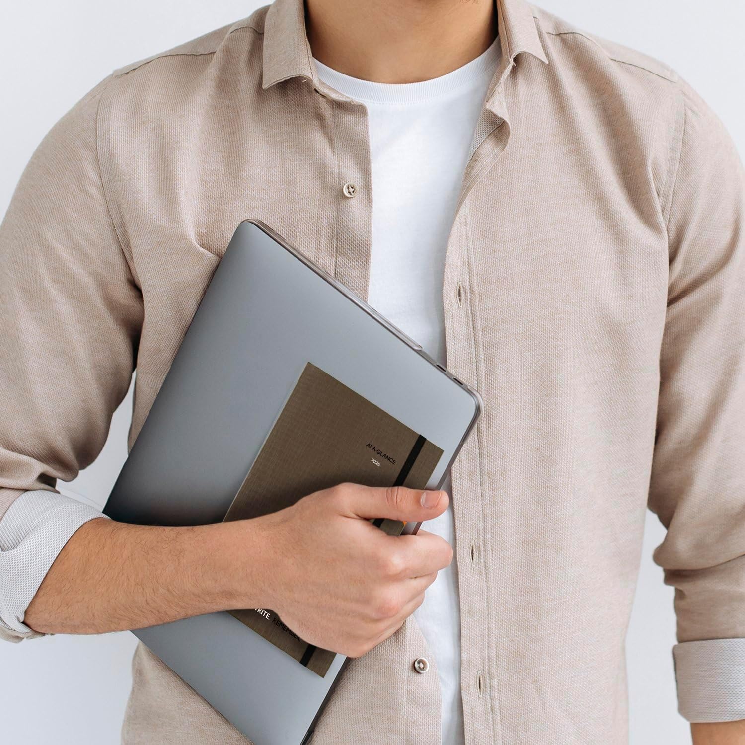 - CONTEMPORARY DESIGN – A bungee closure keeps everything secure, while a durable gray cover and casebound design helps keep pages in place