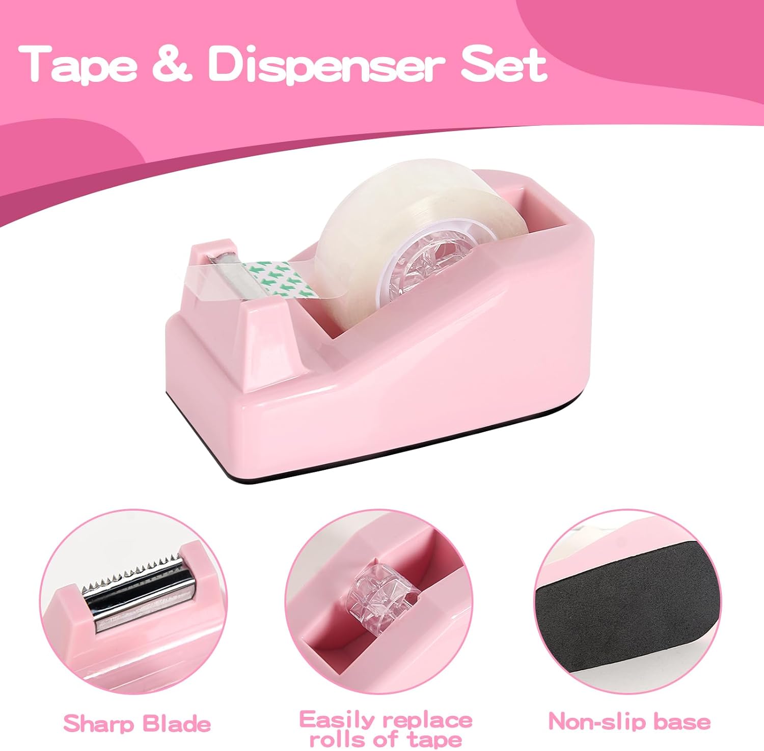 - CUTE & FUNCTIONAL OFFICE ESSENTIALS: Stapler and tape dispenser sets are mainly made of plastic, sturdy and reliable, and not easy to break. With a beautiful appearance, they are ideal for desktop office, home, and daily use.