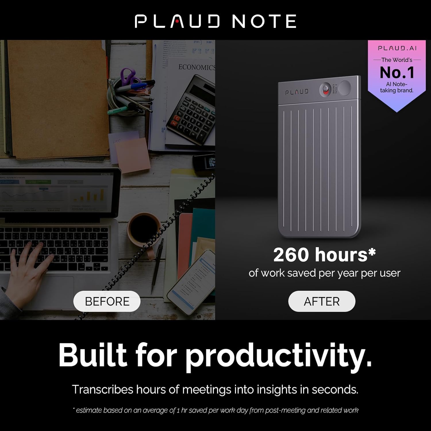 - DUAL-MODE PRECISION RECORDING: PLAUD NOTE features a dual recording engine, capturing high-quality ambient sounds with the air conduction sensor for meetings and presentations, while the Vibration Conduction Sensor (VCS) ensures clear call recordings by capturing internal phone sounds