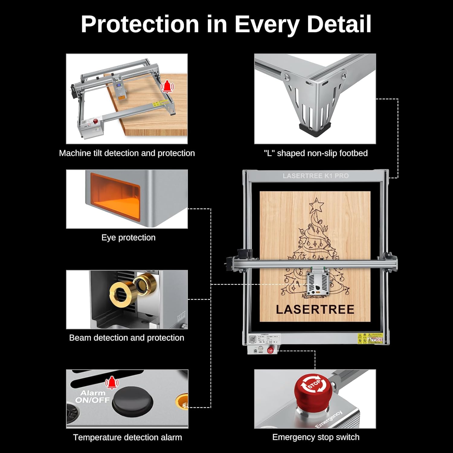 - Easy Installation & Customer Service: LASER TREE laser cutter kit includes laser machine, air assist pump, and Desktop Protection Magnetic Plate. Refer to the instructions and installation video for quick installation. All LASER TREE laser engravers are backed by a 30-day return guarantee (for any reason), a 1-year warranty and lifetime technical support. We have a dedicated technical and support team to resolve all issues, so feel free to contact us if you have any questions