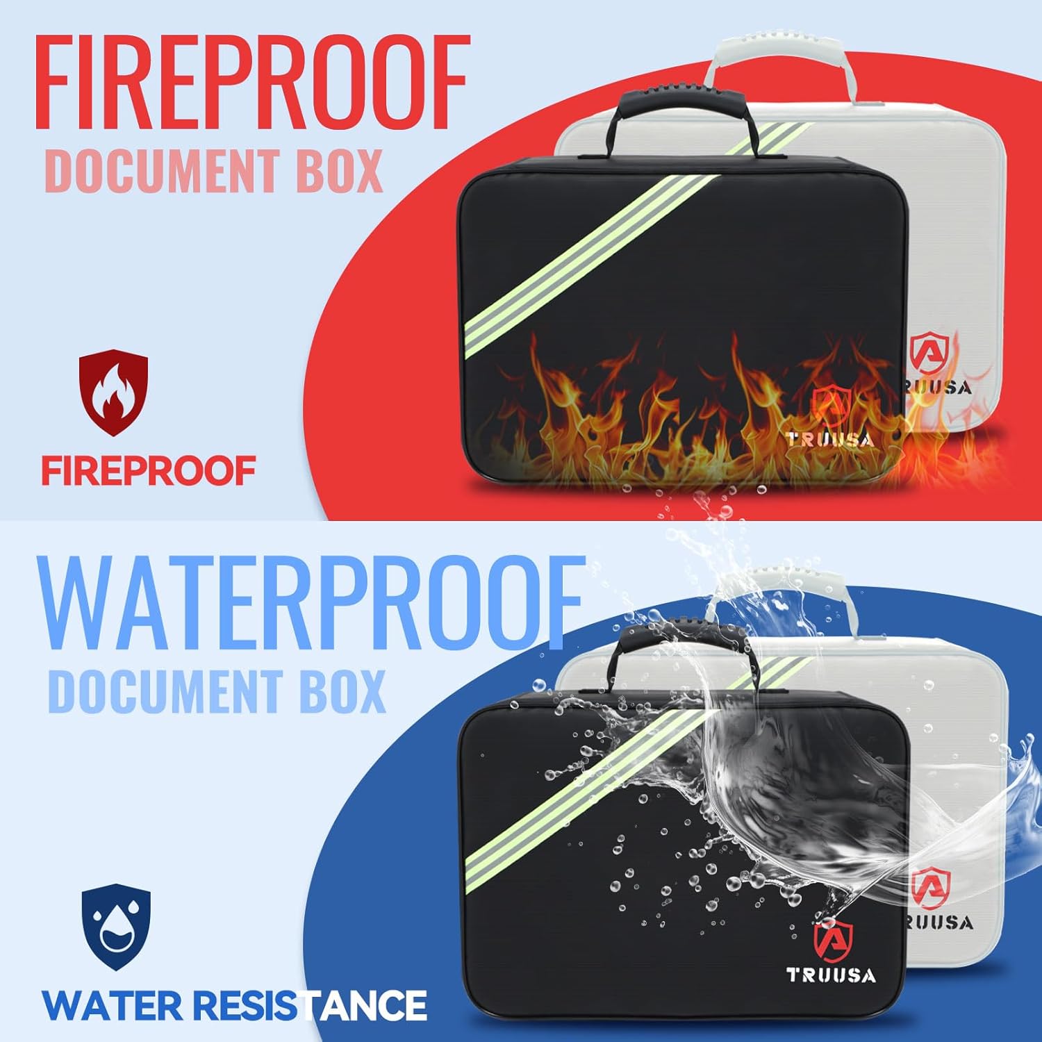 - Night Reflective Strip - the Humanized Design Details: In order to let you find our fireproof file safe organizer very soon at night, we specifically designed Night Reflective Strip. this means you could find & take your most precious valuables in our fireproof bag much quickly. Our fireproof document holder is perfect for Quick Grab & Go or Evacuation in emergency.