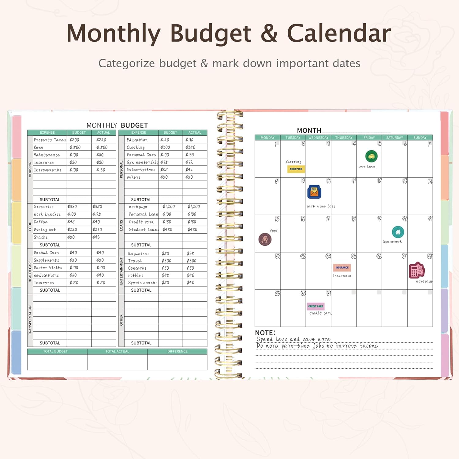 - 12-Month Capacity & Strong Binding - Our budget planner features a dual spiral binding with cardboard hardcover, including 12-month undated design that allows you to start budgeting any time without wasting!