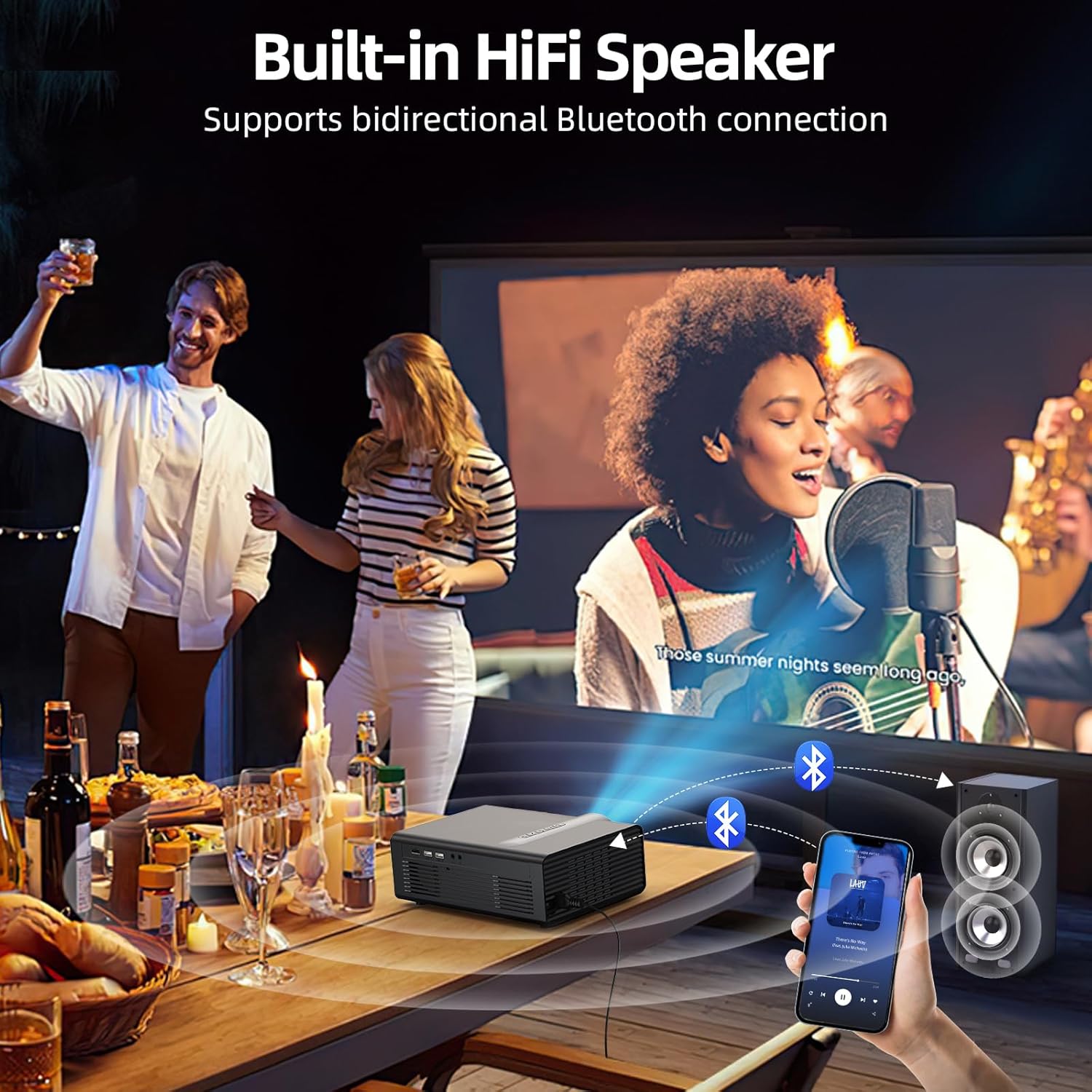 [Electric Focus/Auto Keystone] Projector with WiFi and Bluetooth, Native 1080P 4K Supported,FUDONI Outdoor Movie Projector for Home Theater UP to 300", for iOS/Android/Laptop/TV Stick/HDMI/USB