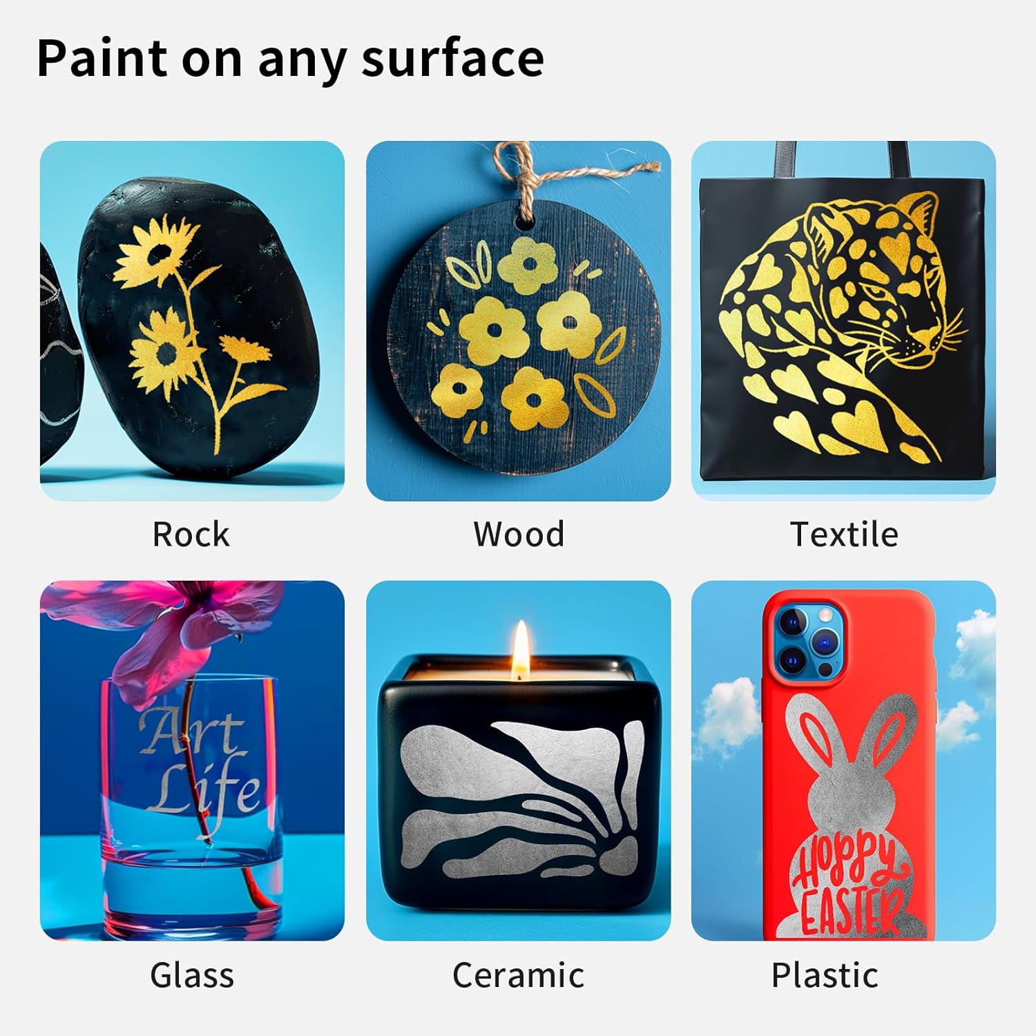 - WORKS ON ALMOST ANY SURFACES: NAWOD paint marker pens work on almost any surface. Paint on rock, canvas, wood, metal, glass, ceramic, plastic, tire, or more with these glass markers! Or use them as fine tip paint pens and paint markers for canvas. They are the best tool for creativities!