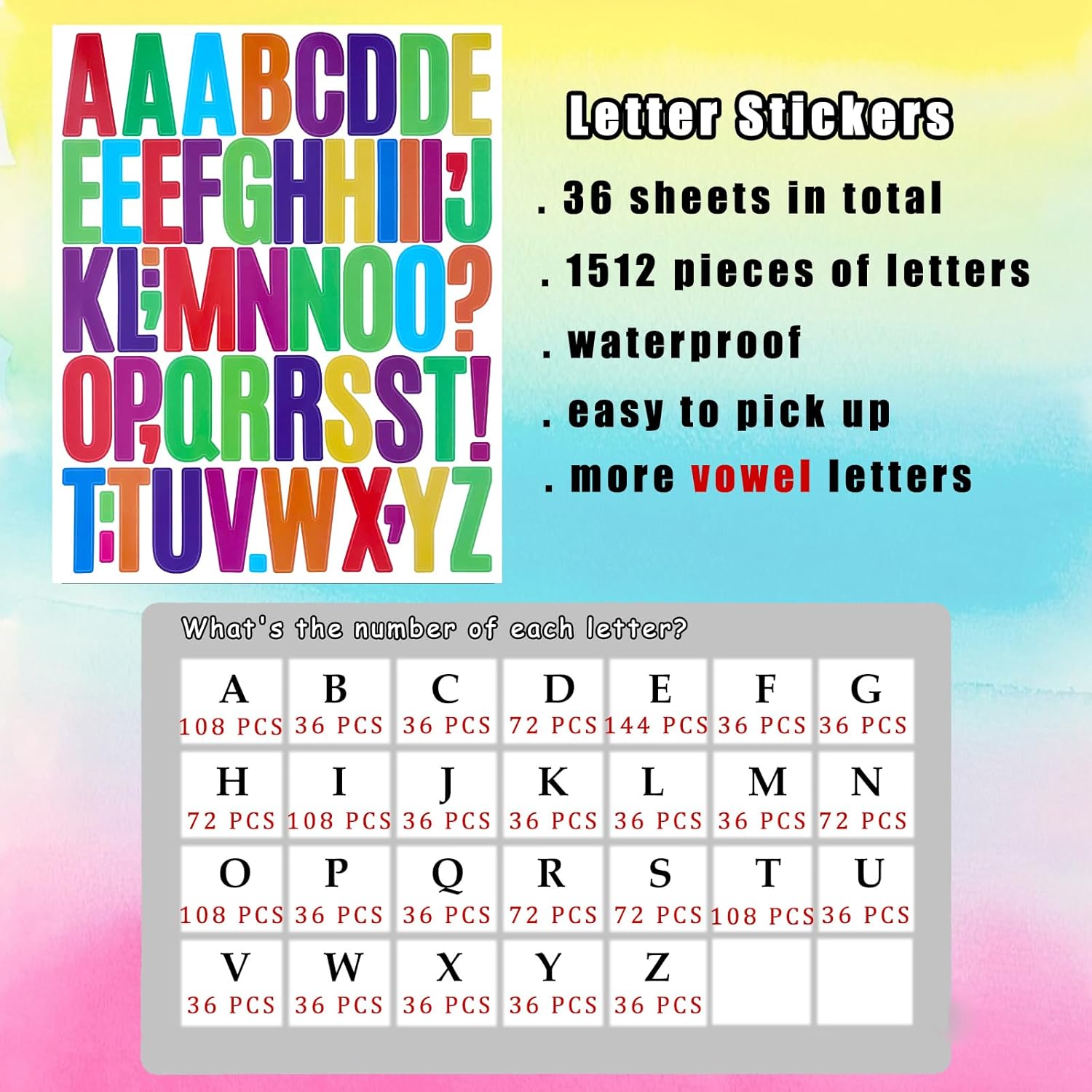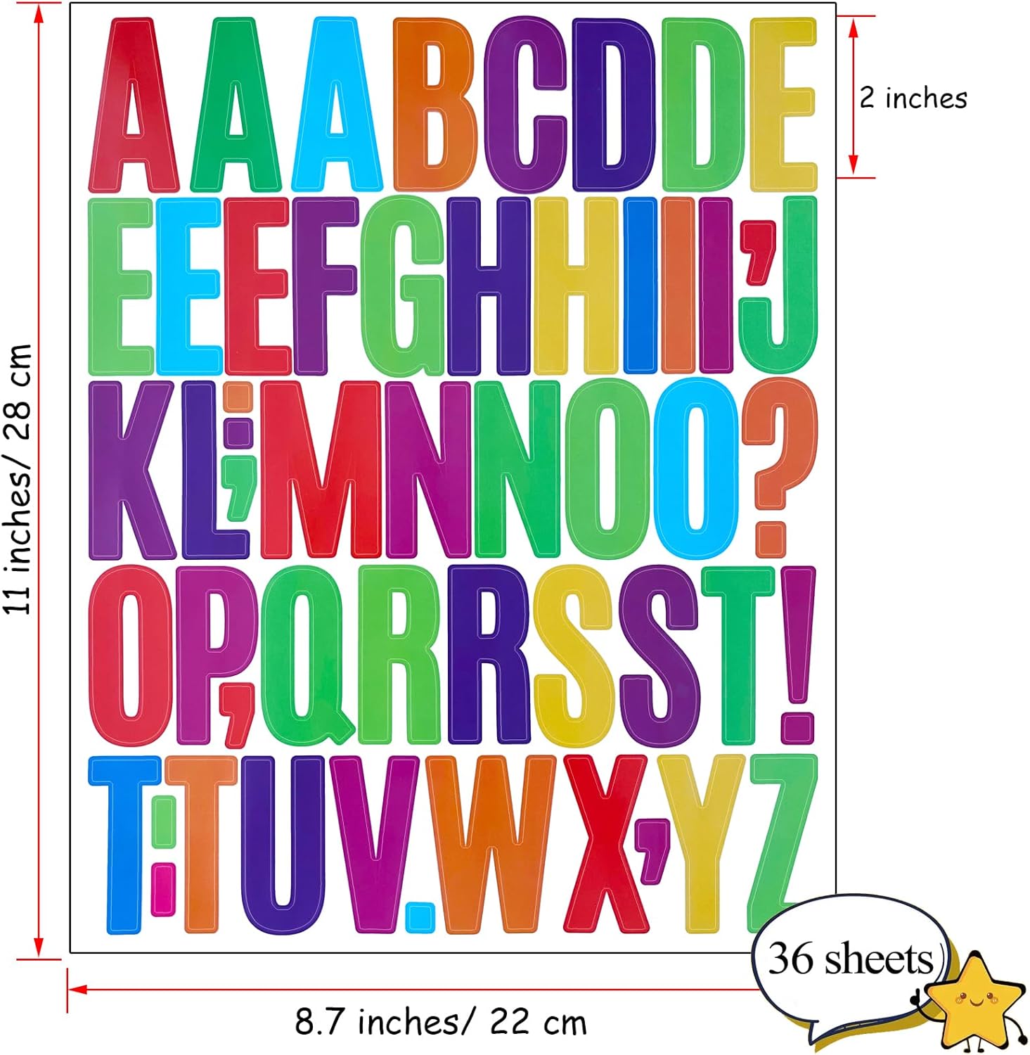 Bemeol 1872 Pieces Letter Stickers 36 Sheets 2 Inch Alphabet Letter Stickers Vinyl Self Adhesive Sticker Letters for Bulletin Board Home Classroom Mailbox Decor(Colorful)