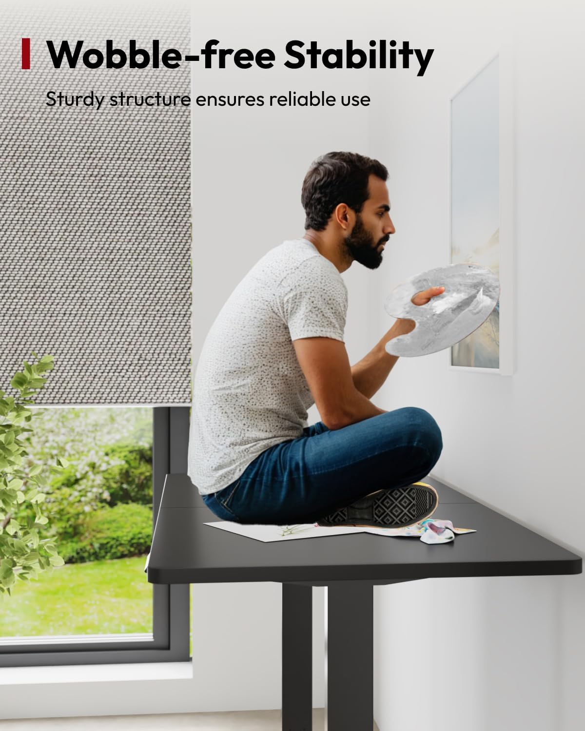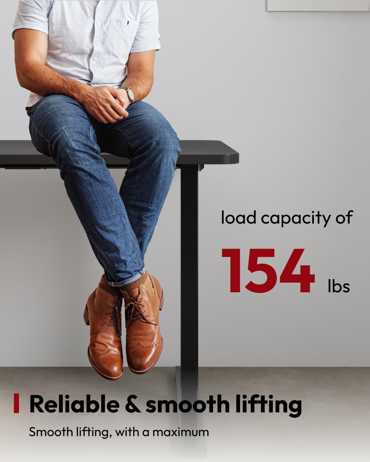 - Ergonomic Workspace: The spacious 60” x 24” adjustable desktop offers a roomy setup that promotes an ergonomic workspace.