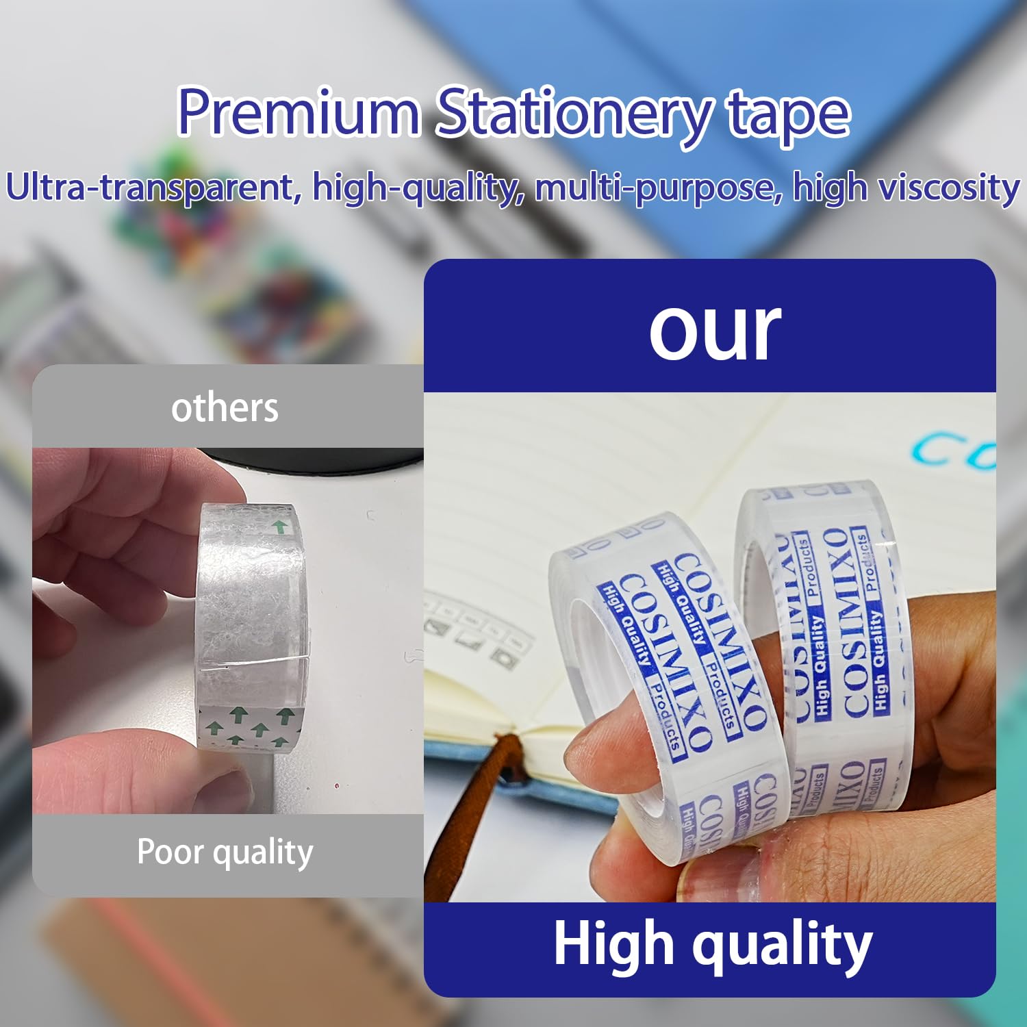 - VERSATILE USE: This Clear Tape From office work to study and even creative crafts, our crystal clear stationery tape is a versatile tool that can be used in a wide range of applications. it great for label protection, gift wrapping, sealing, wrapping, sticking notes,DIY and mending