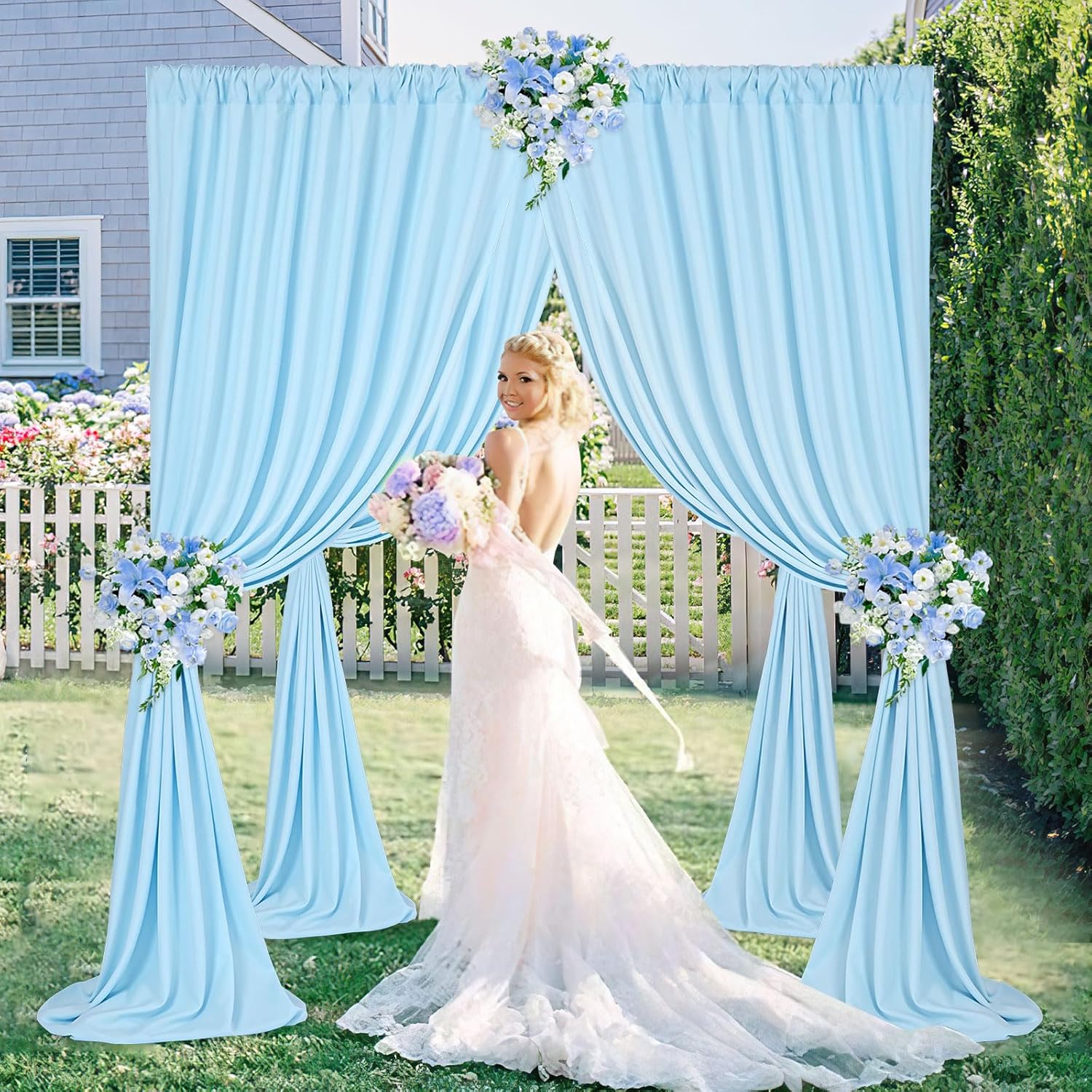 - Baby Blue Backdrop Curtains: Package including 2 panels 5ft width by 10ft height polyester backdrop covering a total area of 10ft width by 10ft height.Please allow errors of 0.1ft.