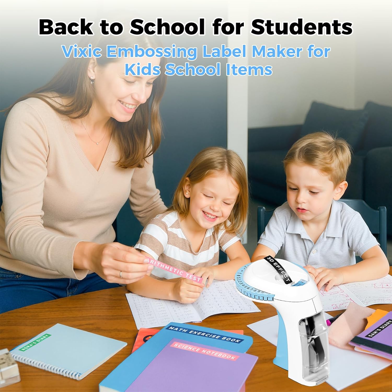 - Easy to Operate Embosser: The old school embossing label maker machine with tape features an easy-to-use rotating and clicking system. Users can create labels by simply "rotate, press, and cut." The built-in cutting blade is designed to be safe and user-friendly, making it suitable for seniors, children, and adults alike