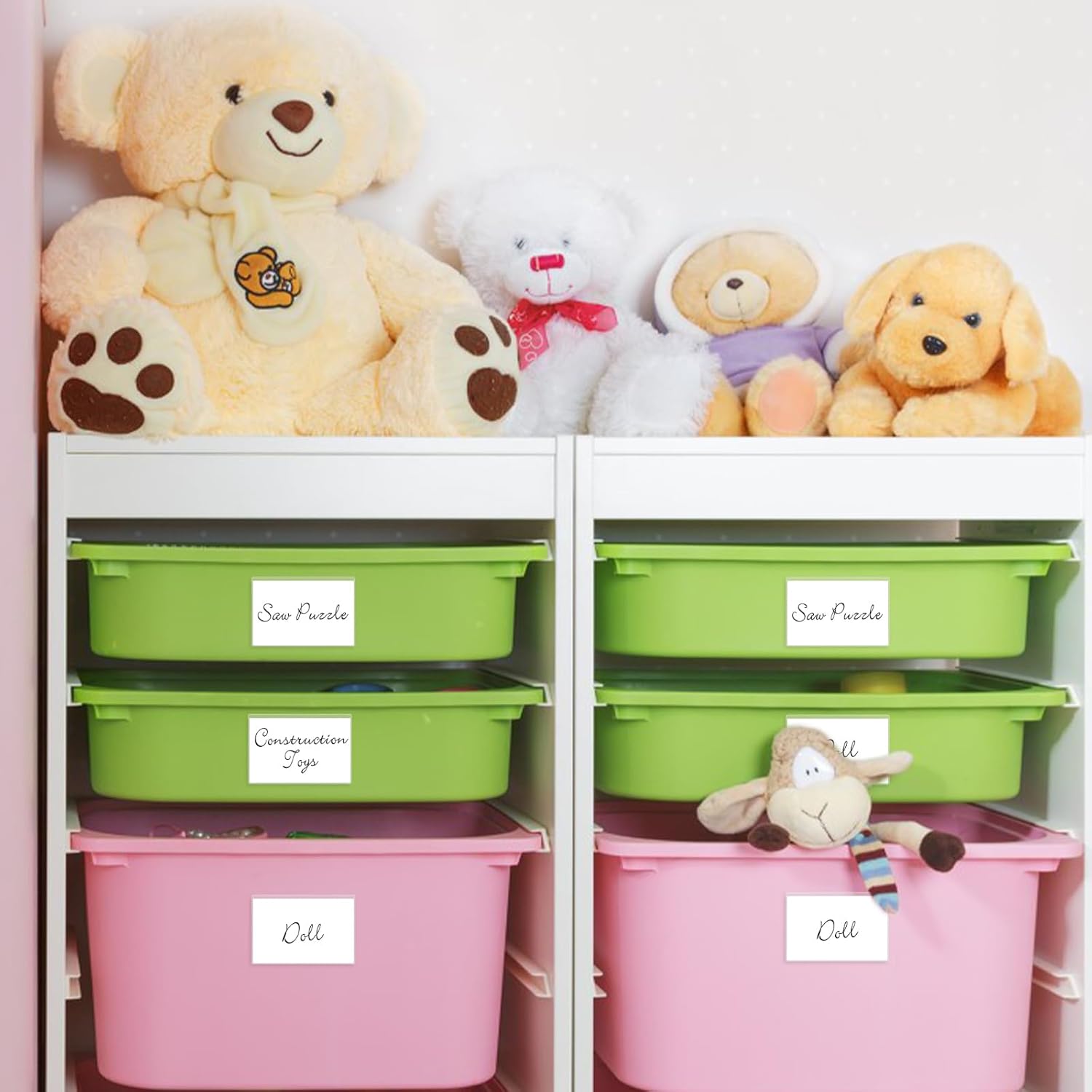 - Good Adhesive: No need for glue, the backing of label for storage bins is self-adhesive and can be easily attached to smooth surfaces such as plastic, glass, wood, metal, paper. It is not easy to leave adhesive marks when peeling off