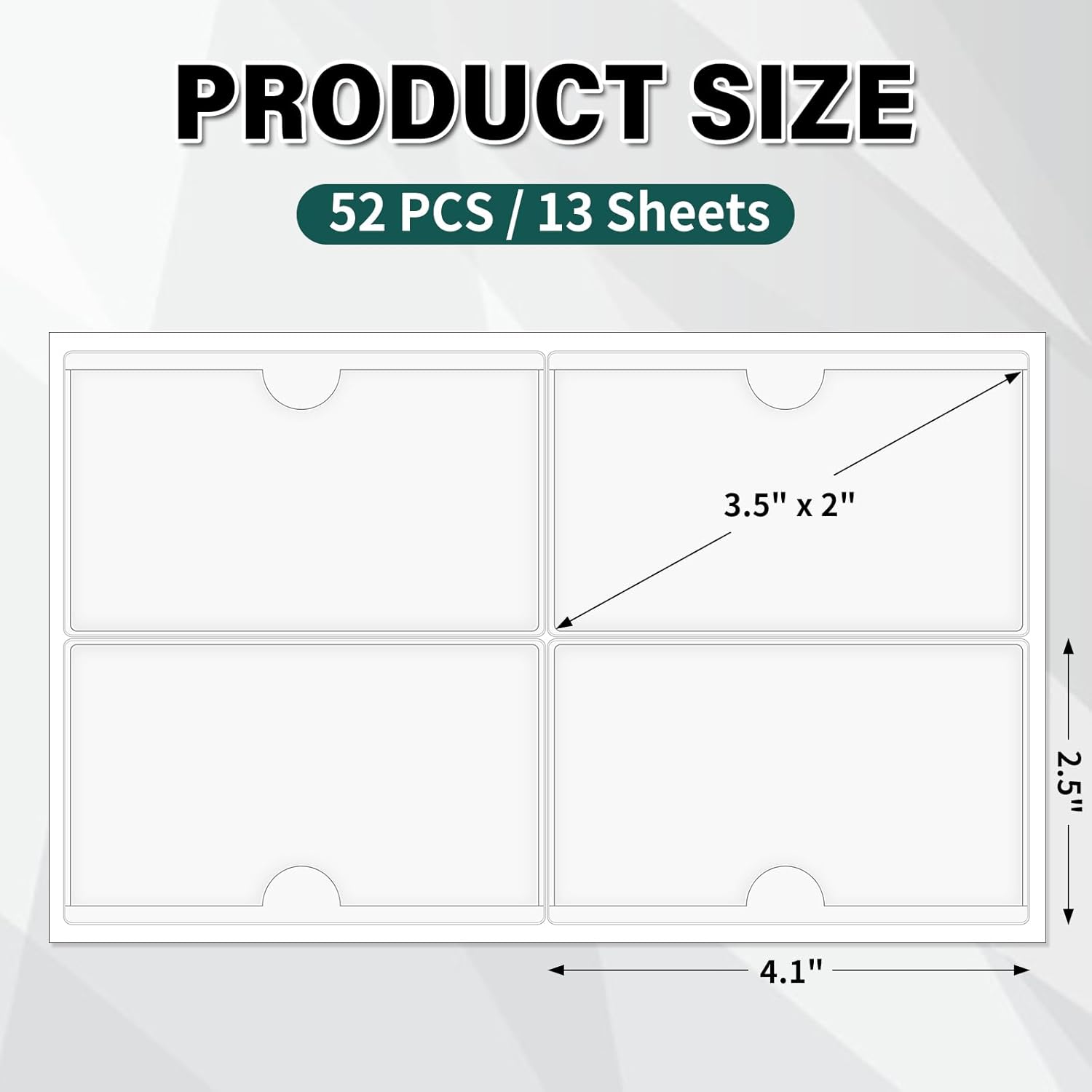52 Pack Clear Adhesive 3.5" x 2" Index Card Pockets With Top Open, Plastic Card Sleeves Index Card Holder for Organizing Storage Bins, Library Cards, Notes, Drawer