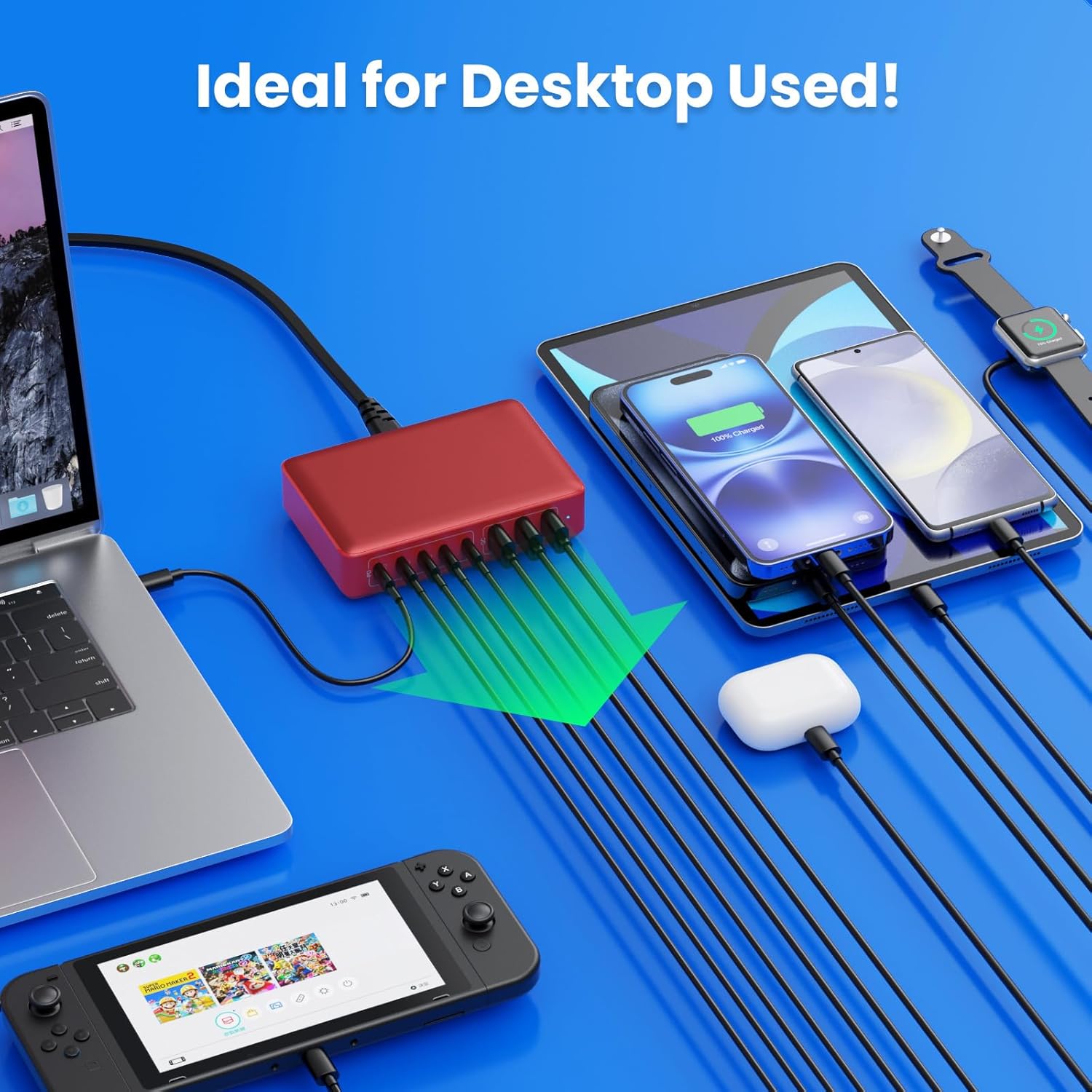 - 【300W Super Fast 8-in-1 Usb C Charger Block】Our USB charger provides multi charging options to meet your different needs. With 5*USB C ports and 3*USB A ports, no need for more adapters, you can use just one outlet to plug in laptops, tablets, smartphones, Bluetooth speakers and other small gadgets like earbuds, smartwatches, game consoles etc.Our USB C charging stations feature 8 independent output ports, ensuring all devices can charge simultaneously at full speed without power sharing and disconnection,this 8-in-1 charging station will reduce your accessories burden and help you create an organized and clean desktop.