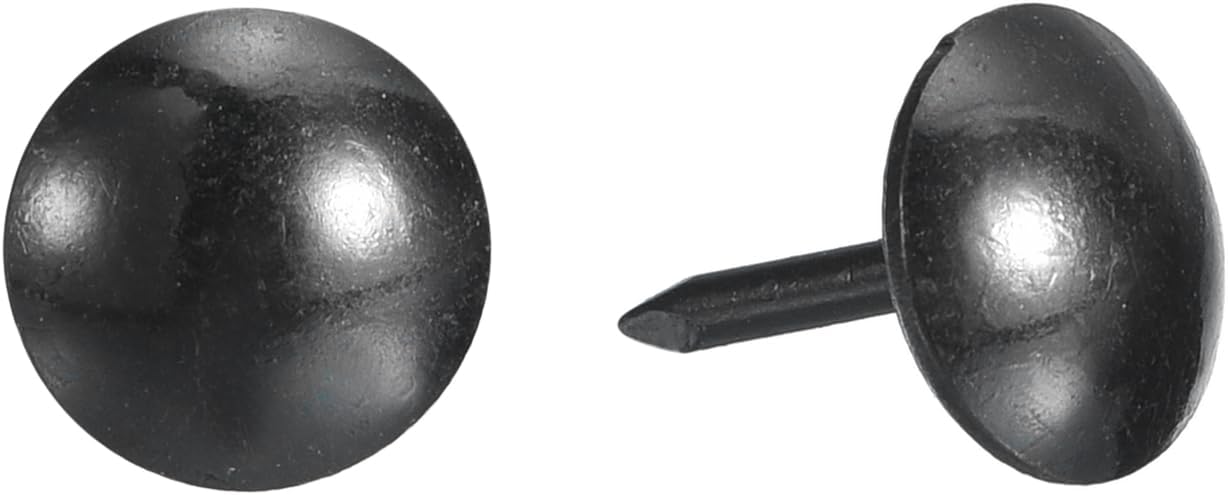 - Specifications: Material: Carbon steel; Color: Black; Diameter of nails head: 9mm/0.36inch; Shank length: 13mm/0.512inch; Package Content: 150Pcs x Upholstery Tacks Nail Pins