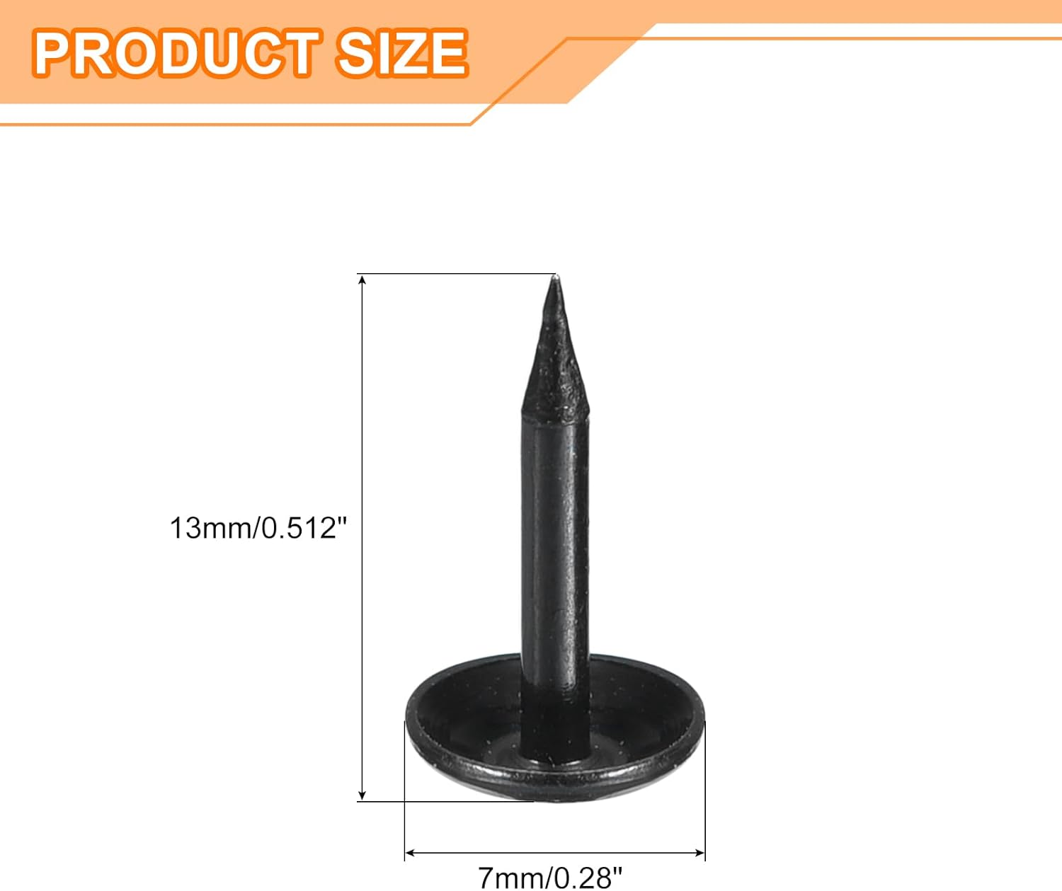 - Specifications: Material: Carbon steel; Color: Black; Diameter of nails head: 7mm/0.28inch; Shank length: 13mm/0.512inch; Package Content: 150Pcs x Upholstery Tacks Nail Pins