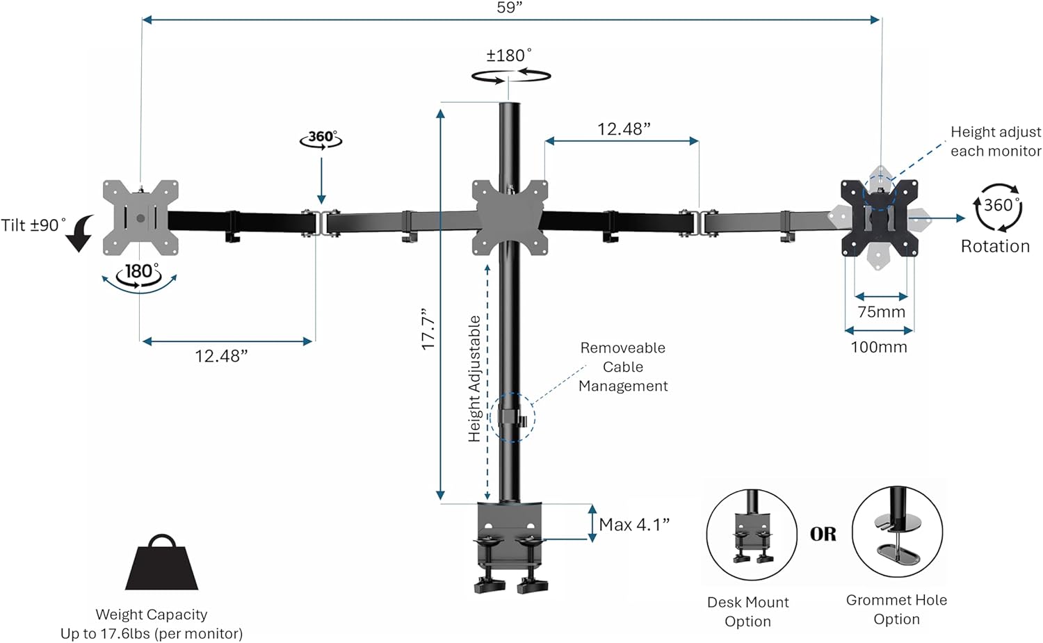 - ELECTRIC Standing desk converter computer workstation bundle - includes R EDRB-46 Electric Desk Riser, R DM3 Triple Monitor Arm and a conveniently placed 10.5" wide tablet or phone slot, for even more convenience and functionality