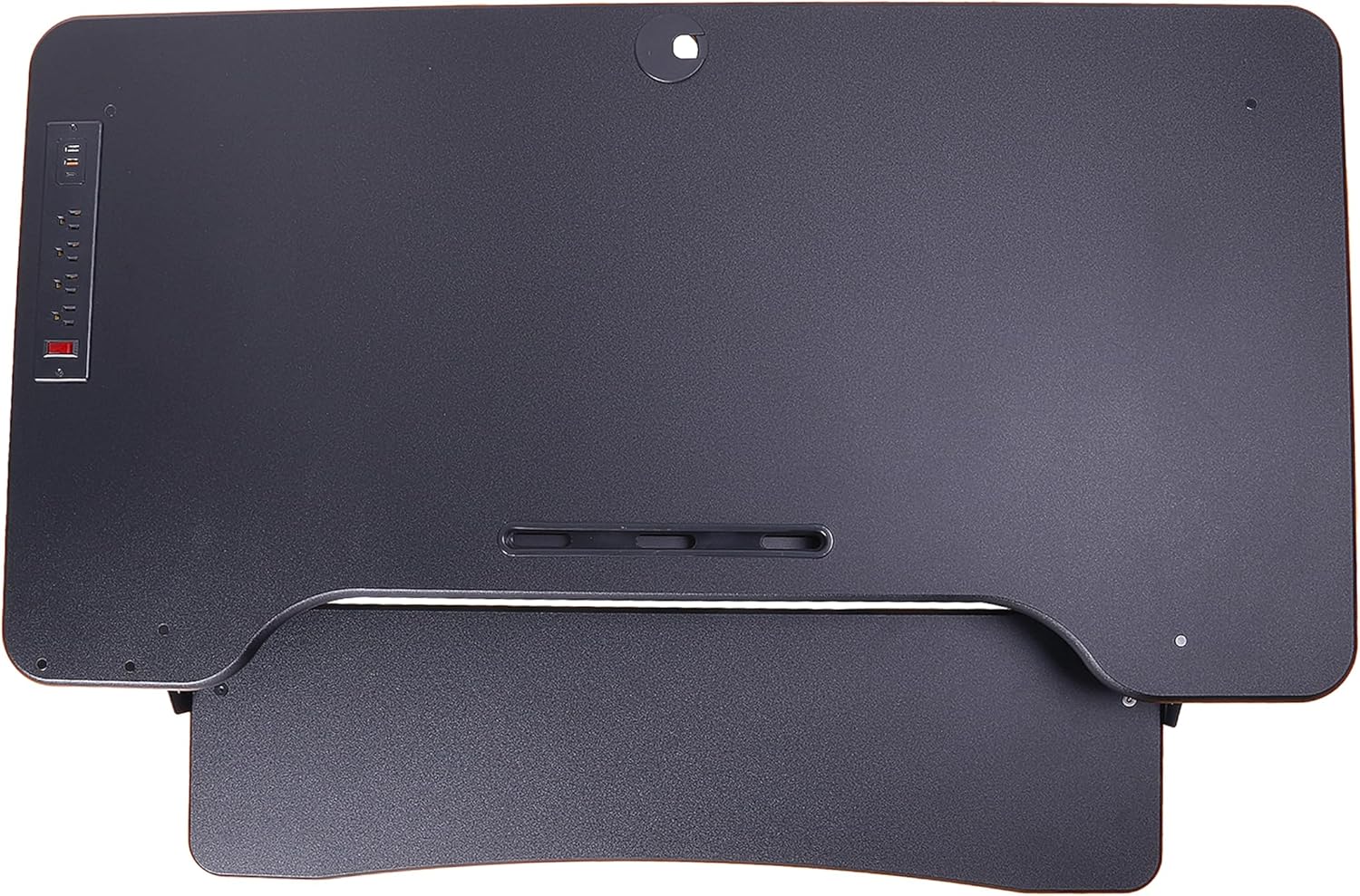 - AC-USB Strip mounted on top left corner includes four 120v AC Outlets, one USB-C and two USB-A charging ports attached to an extra-long 10ft power cord to power and charge all your devices.