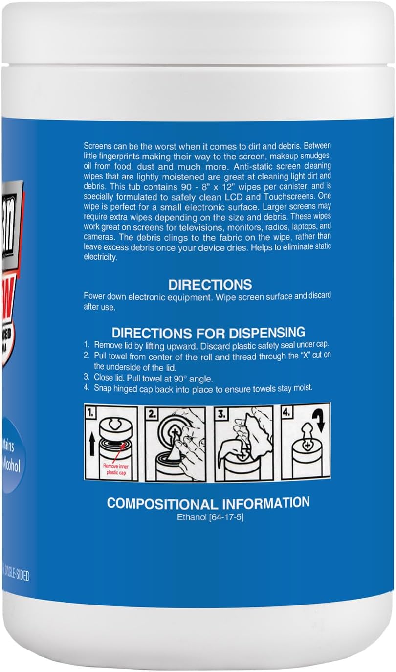 Zenex Screen Clean Anti-Static Electronic Screen Wipes - Single Sided Non-Abrasive Towels | For TV, Phones, Monitors | Quick Dry & Streak-Free | Prevents Static Build-up (2 Pack | 180 Sheets Total)