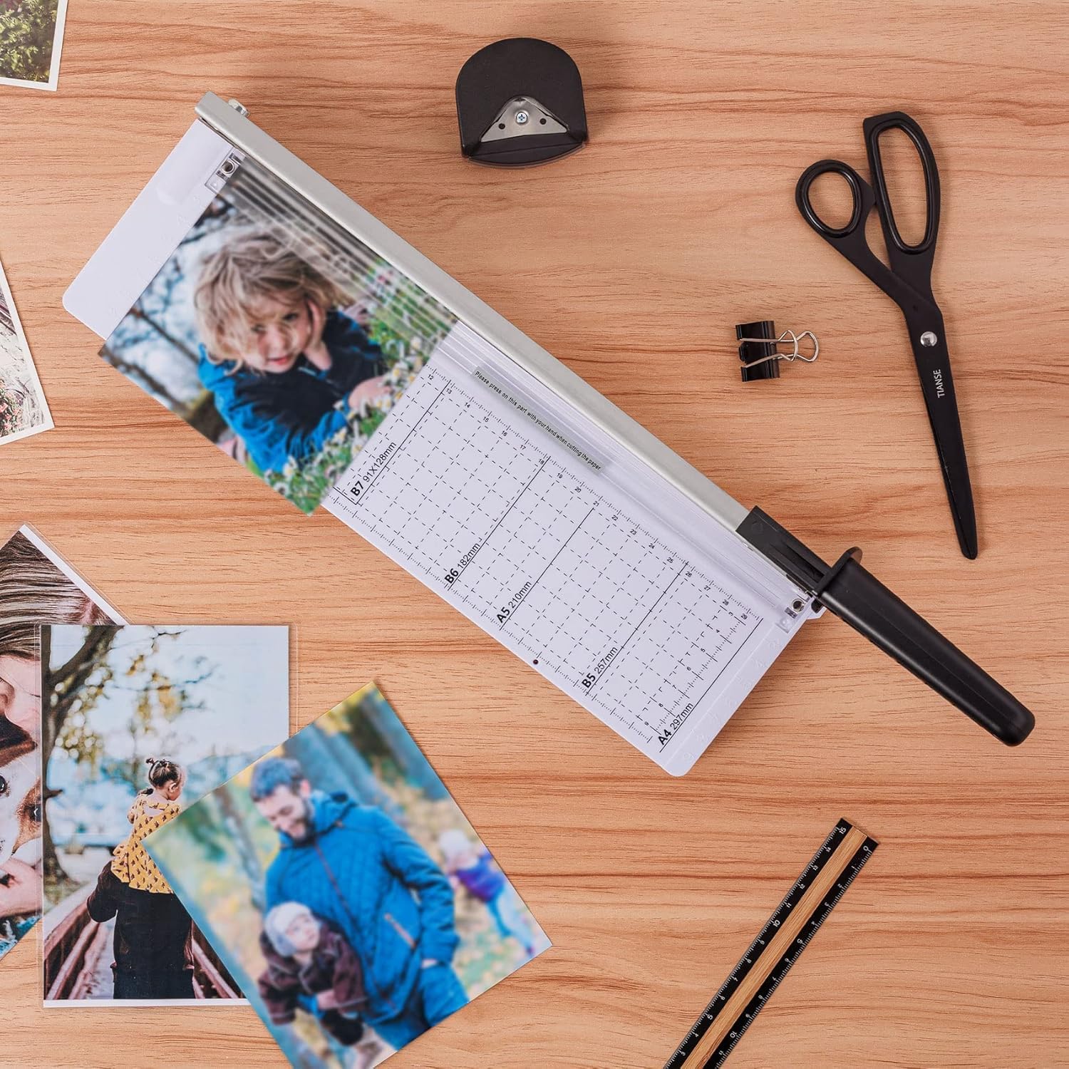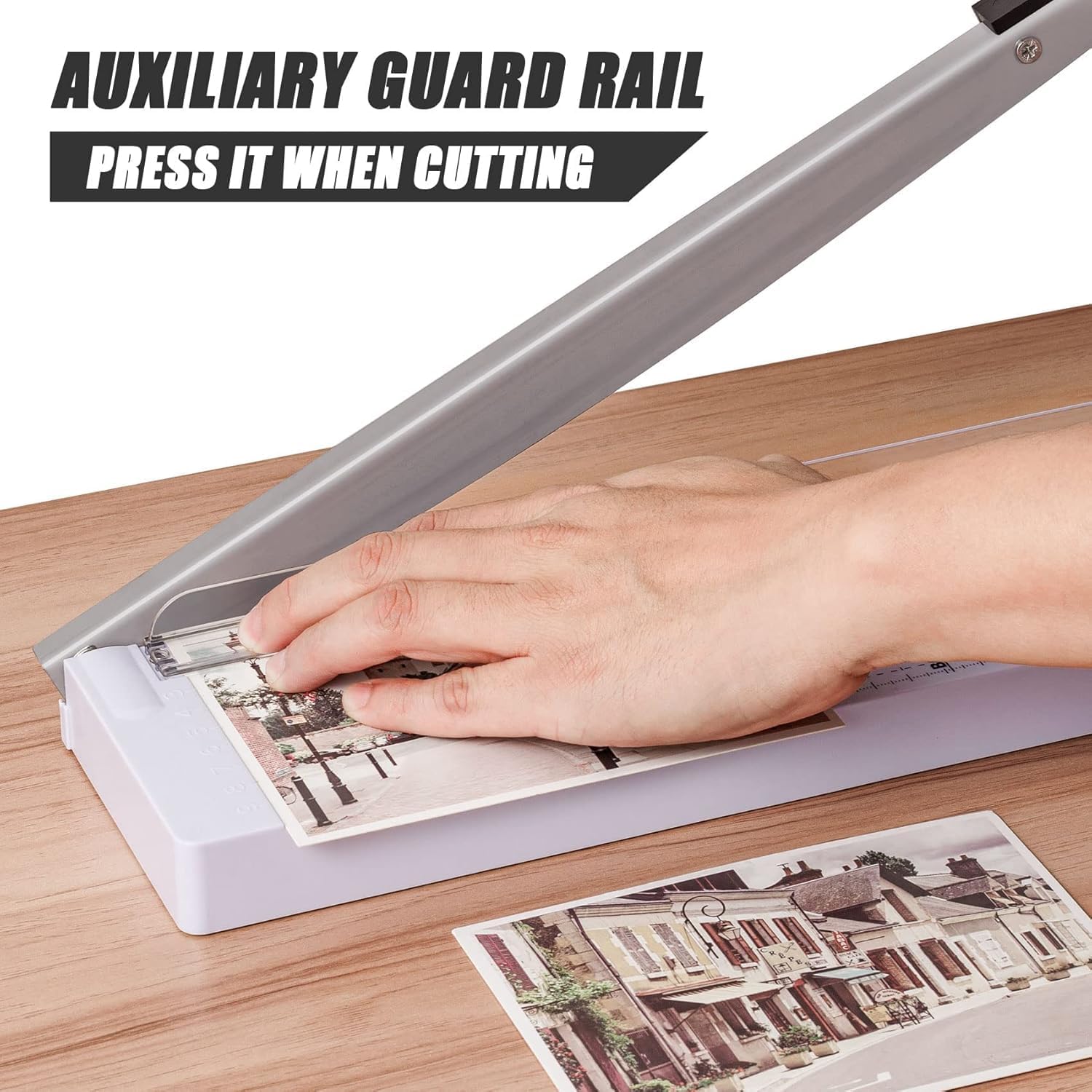 - HIGH PERFORMANCE GUILLOTINE TRIMMER:thick and sharp stainless steel blades will stay sharper longer; Accurate measuring scale make cutting work more quick and precise sturdy plastic base cutting paper without difficulty