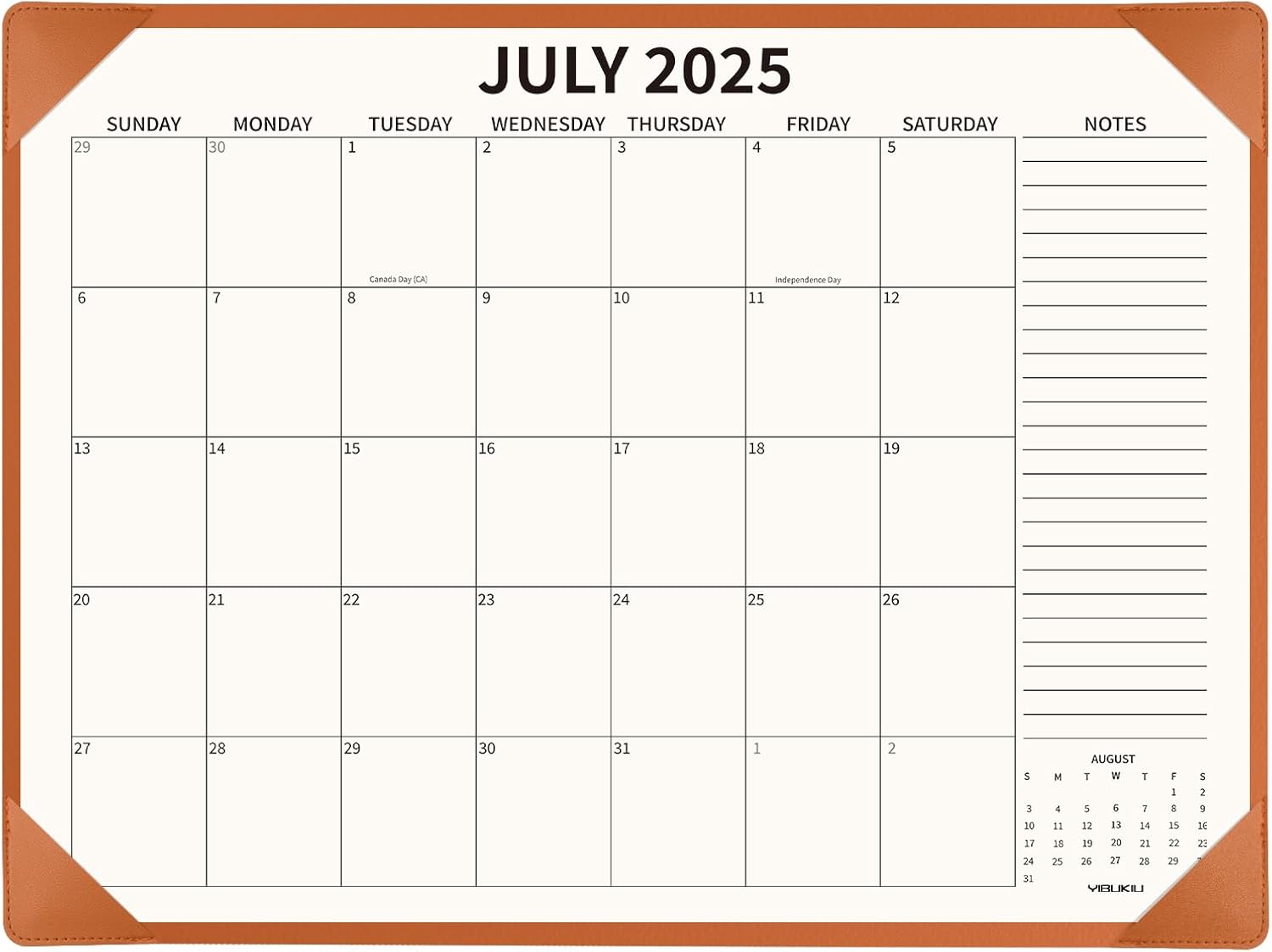 Desk Calendar 2025-2026 with Desktop Mat, 22x17 inch Large Desk Pad Calendar July 2025 to June 2026, Big Desk Planner for Home Office and School, Brown