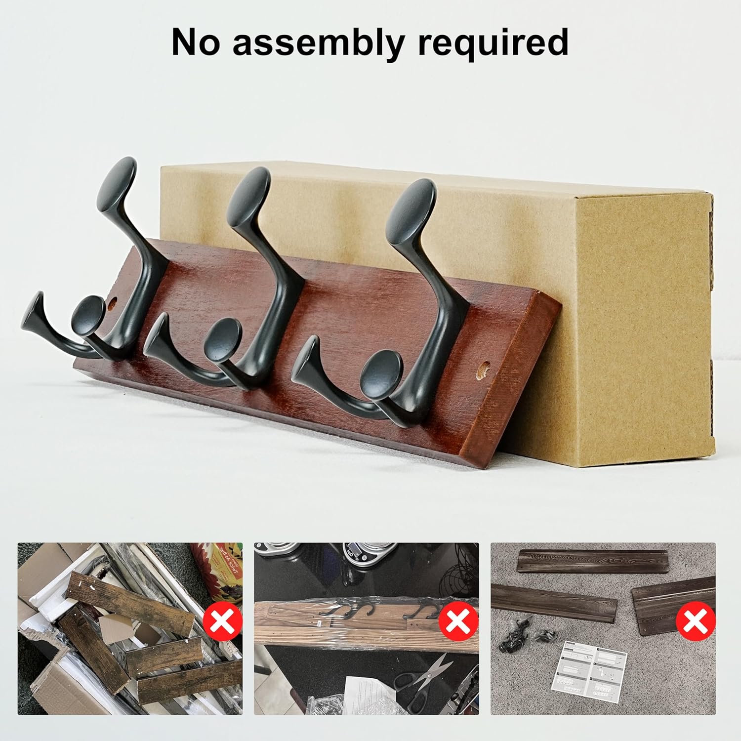 SKOLOO 17-Inch Cherry Wood Coat Rack Wall Mount with 3 Triple Hooks - Ideal for Family Entrances, Classrooms, and Pet Supplies Storage - Perfect Coat Hooks for Wall