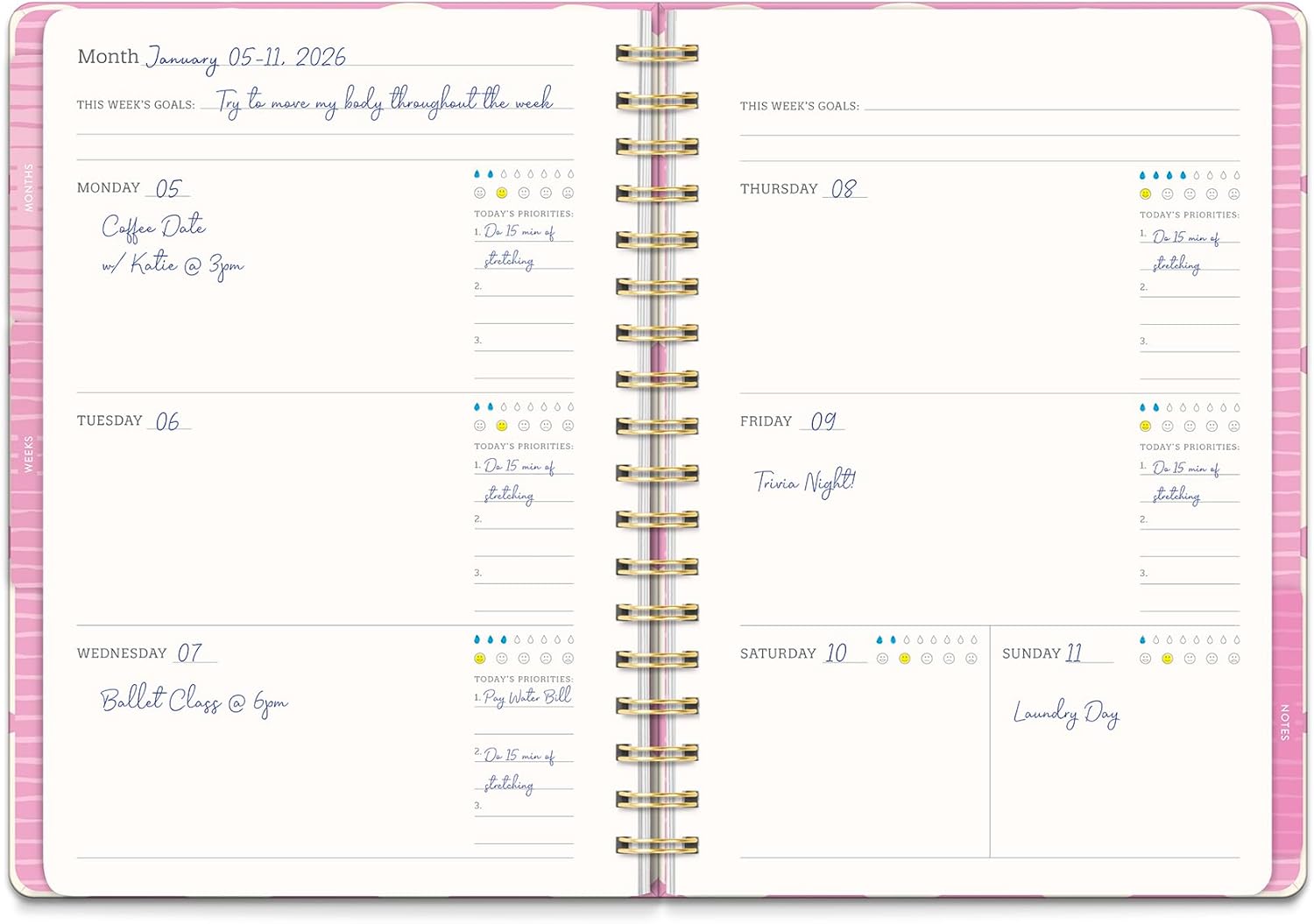 - EASY ORGANIZER NOTEBOOK: Our undated weekly planner will keep you organized in all areas of your life. Each page features convenient tracking tools so you can stay on top of your hydration, goals, and more, while each divider features a pocket for storing receipts, lists, cards, and other loose notes. Plus, we've included full-color stickers that make tracking your to-dos fun and easy!
