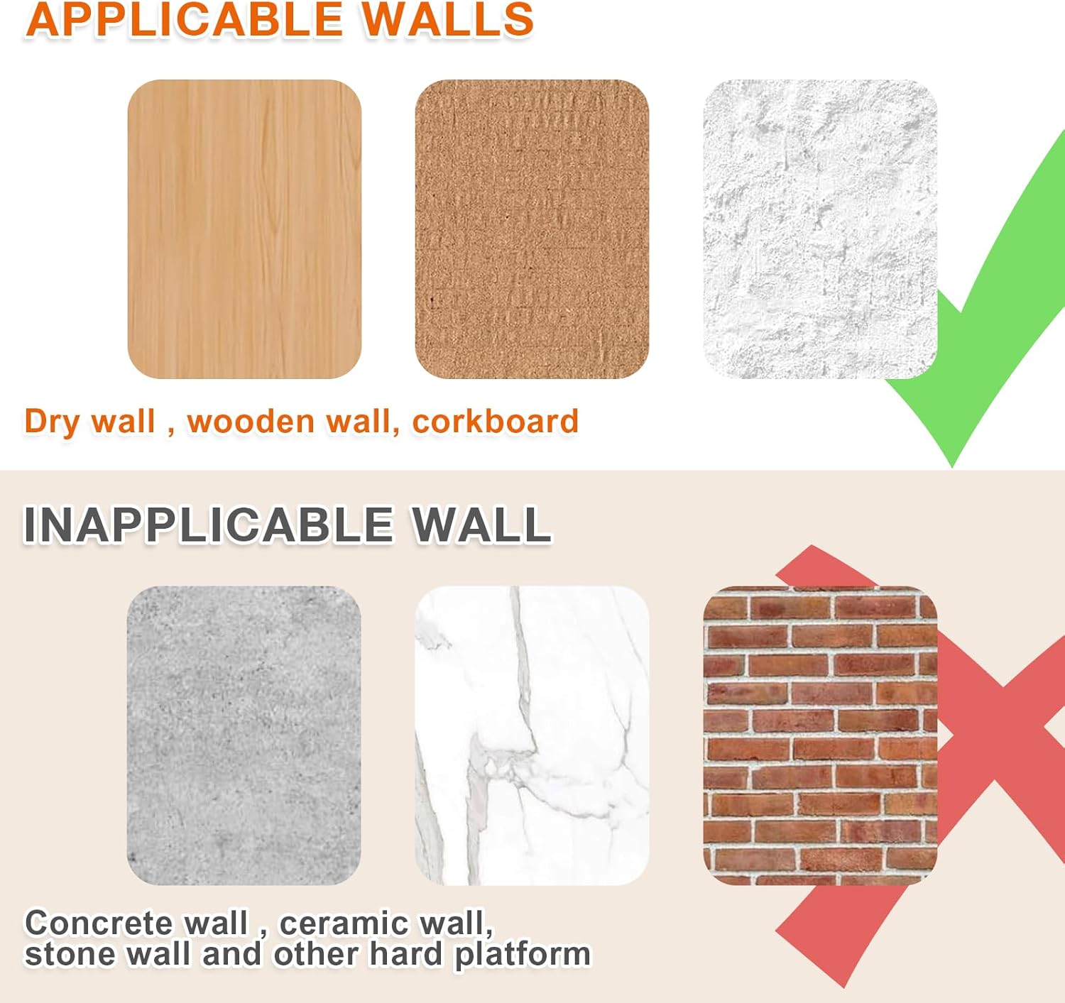 - TRACELESS THUMBTACKS: The holes made by the Hang pictures on wall without nails are very small and almost leave no marks, which can avoid damaging the walls. The picture hangers enable you to create beautiful displays without leaving a lasting impact. Please consider the hardness of the wall before purchasing. Our wall hooks for hanging may not be suitable for very hard or fragile materials, so be sure to evaluate the wall type in your home for the best results.