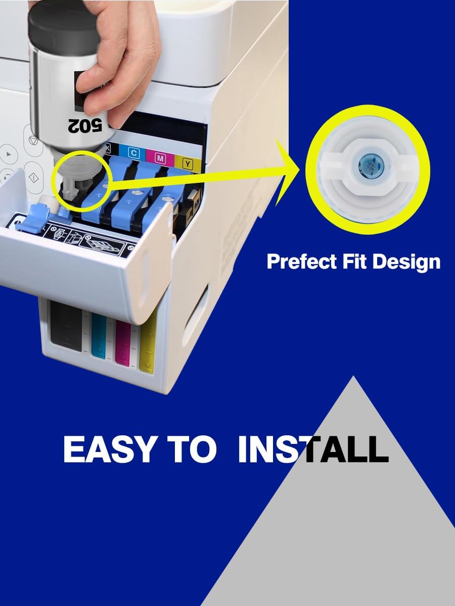 - Innovative Design -- 502 ink refill bottles ink bottle adopts a humanized design that can automatically stop output. It is easy to fill. After filling, you only need to lift the ink to stop leaking, effectively preventing ink leakage and ensuring the cleanliness and efficiency of the printing process.