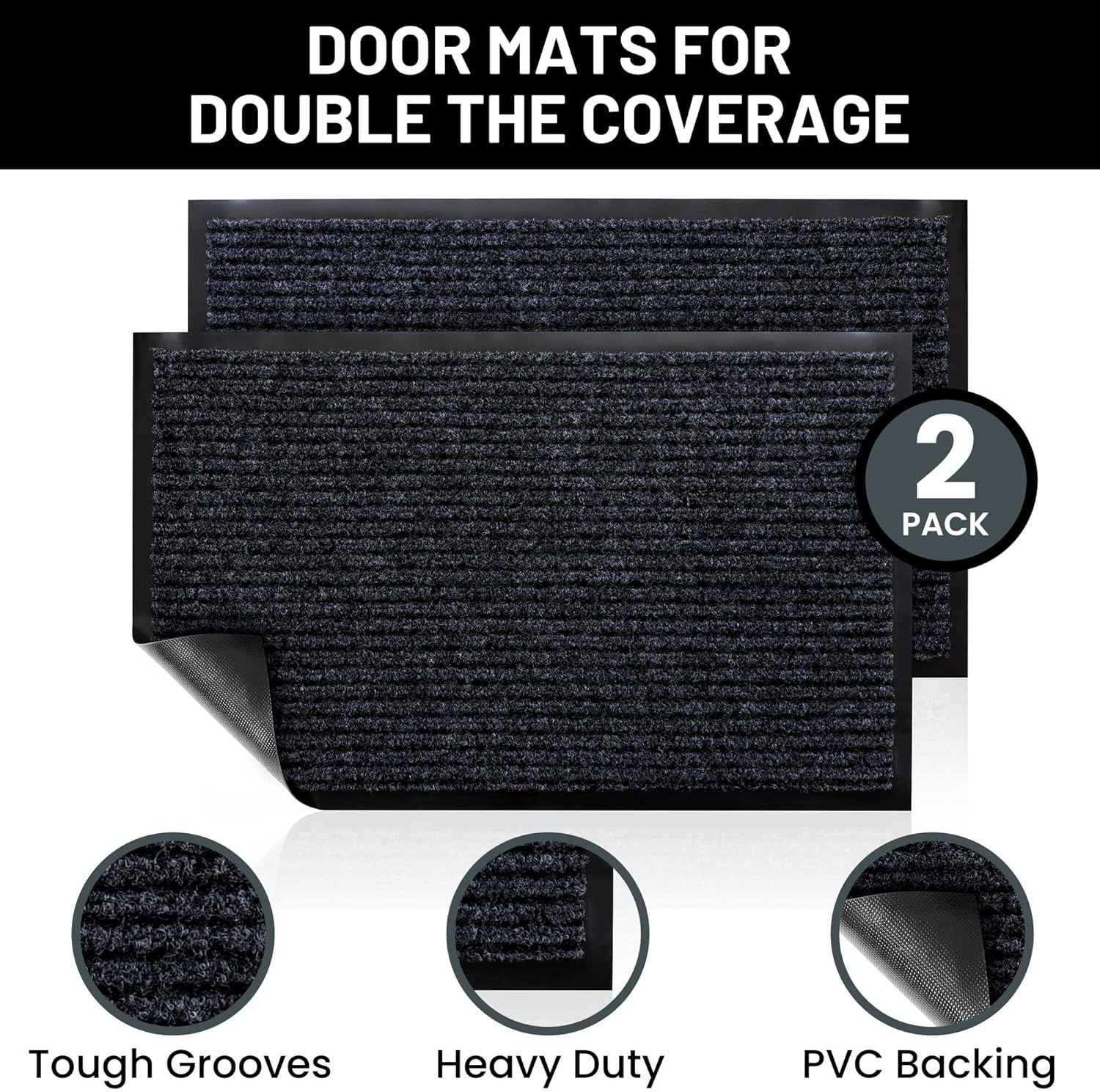 - Includes 2 STEEL GRAY (tiny hint of blue) X-Large Indoor Outdoor Floor Mats: Enjoy two amazing heavy duty high quality ribbed polyester door mats (Larger 48" x 36") that will be perfect welcome for the everyday home. Amazing value 2-Pack.