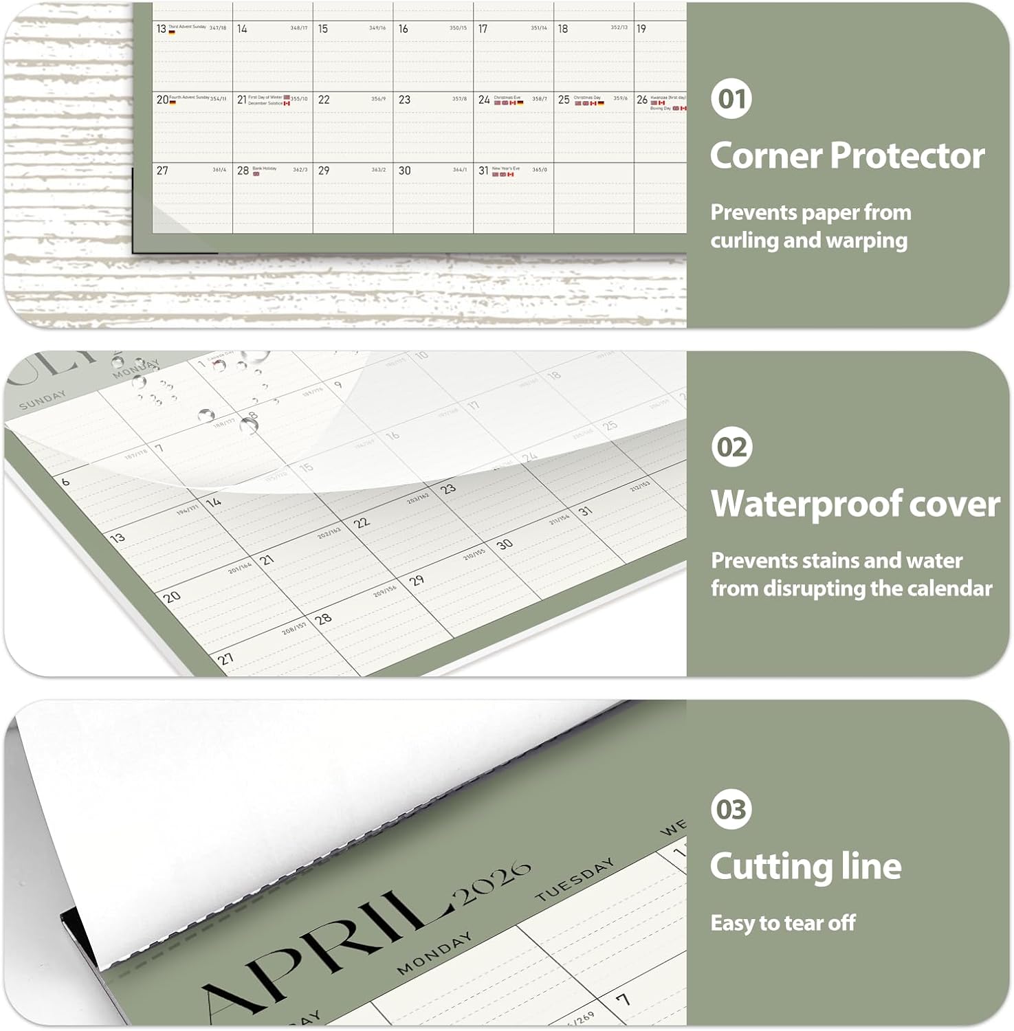 - [QUALITY THICK PAPER] -Crafted with thick paper, the calendar prevents ink bleed-through, keeping the surface neat and tidy for a clear and pleasant view. Our calendar is printed on FSC-certified wood-based paper.