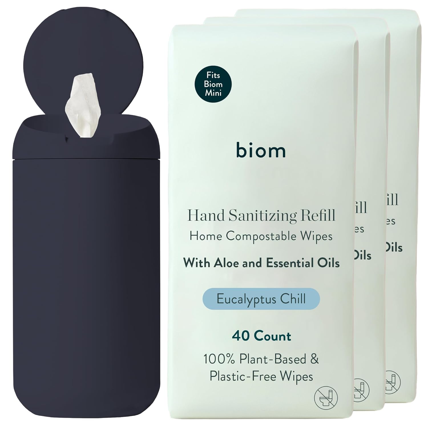 - NEW MINI SIZE: Meet Biom’s Hand Sanitizing Mini — your compact, refillable solution for clean, hands anytime, anywhere. Unlike single-use sanitizing wipes that dry out and create waste, Biom’s Mini is 100% plant-based, biodegradable, and ultra-portable (yes, that means cup holder friendly)—perfect for travel, commuting, dining out, and daily life.