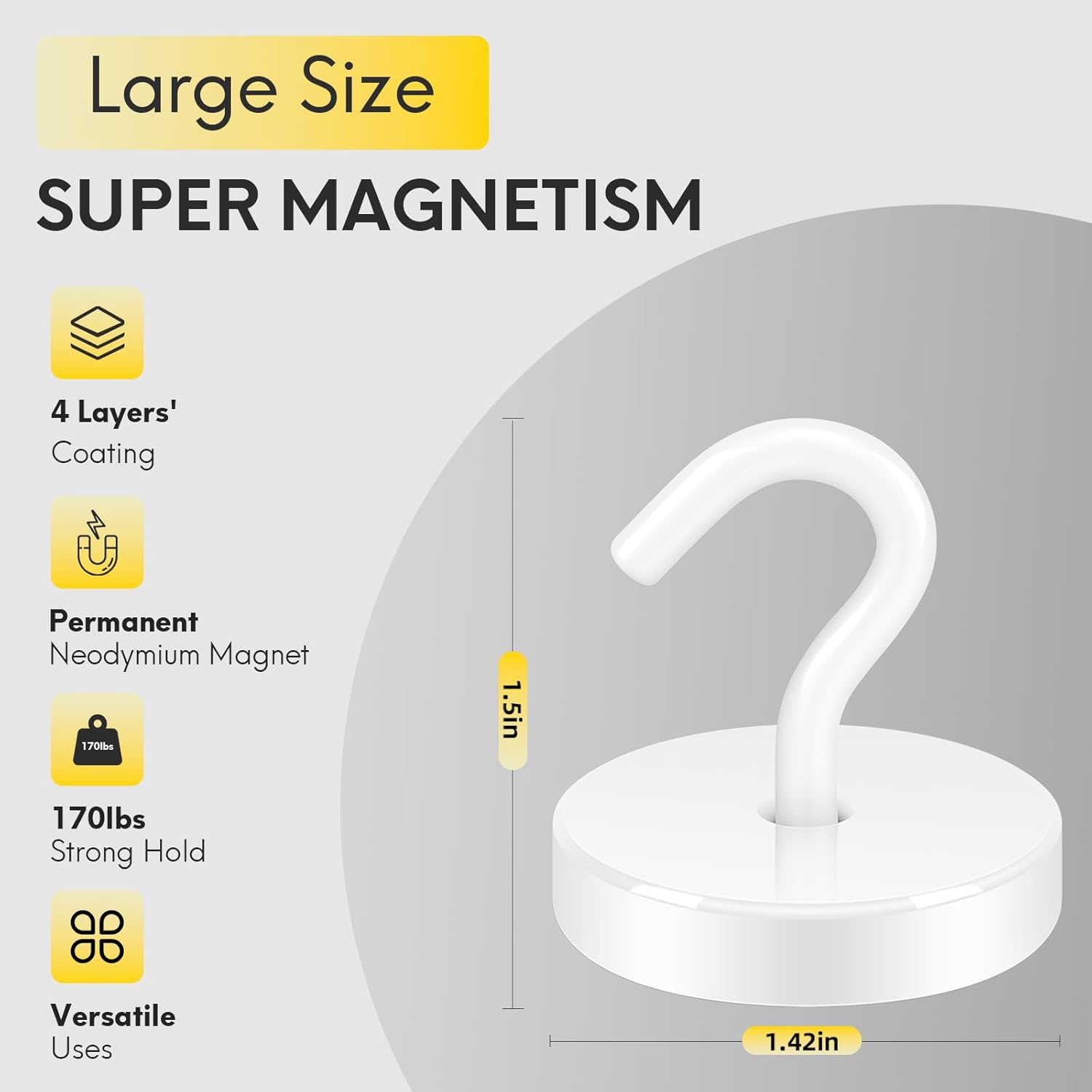 Neosmuk Magnetic Hooks, Heavy Duty 170lb Strong Magnets for Cruise Cabins, Ship Essentials, Large Metal Hooks for Hanging on Fridge(White,Pack of 4)