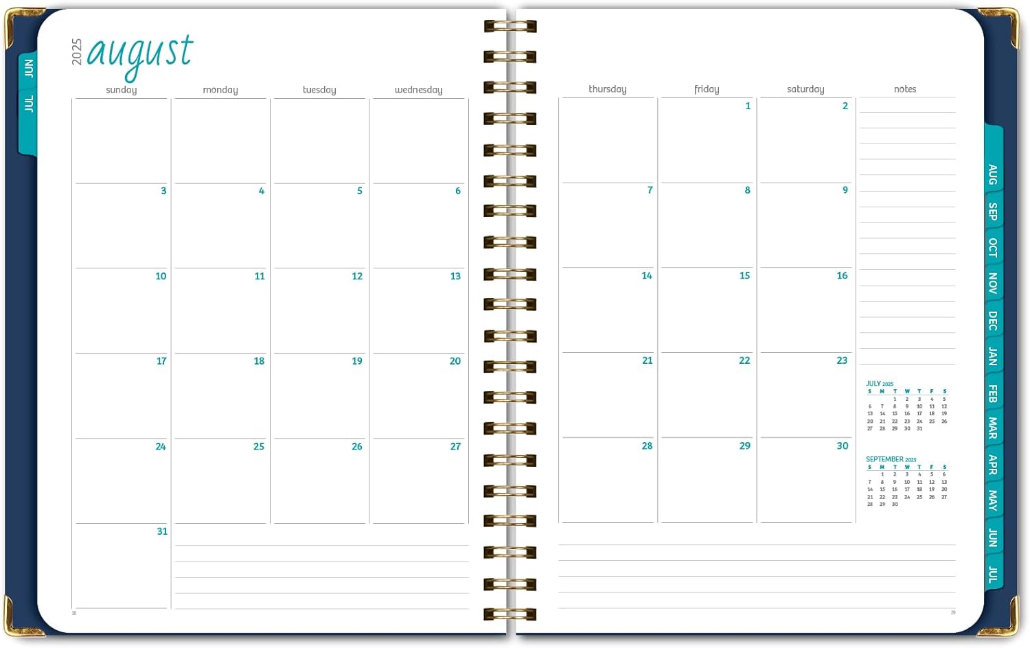 HARDCOVER Academic Year 2025-2026 Planner: (June 2025 Through July 2026) 8.5"x11" Daily Weekly Monthly Planner Yearly Agenda. Bookmark, Pocket Folder and Sticky Note Set (Navy Gold Numbers)
