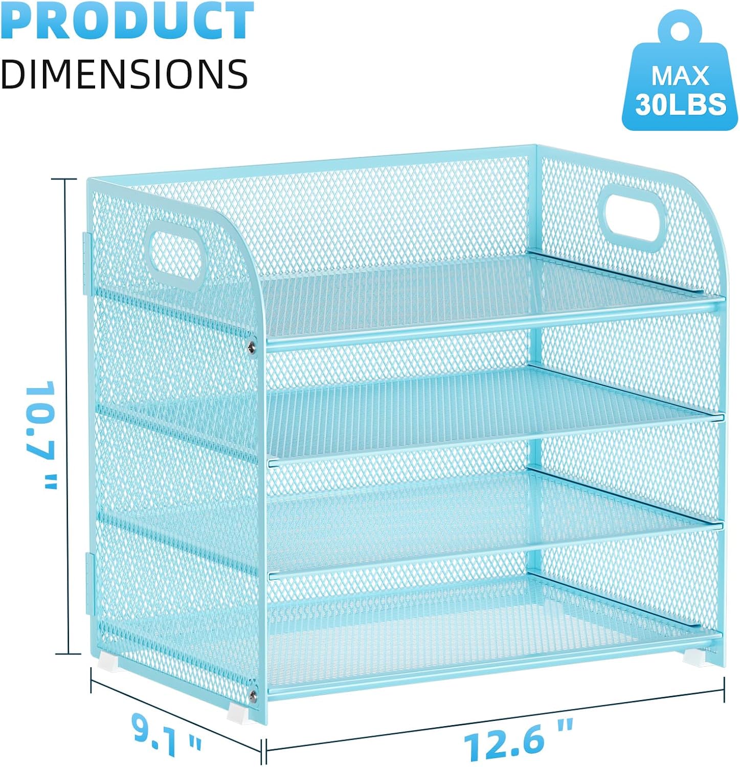 Marbrasse 4 Tier Paper Organizer Letter Tray - Mesh Desk File Organizer with Handle, Paper Sorter Organizer for Letter Office File Folder Holder (Blue, 12.6" x 9.1" x 10.7")