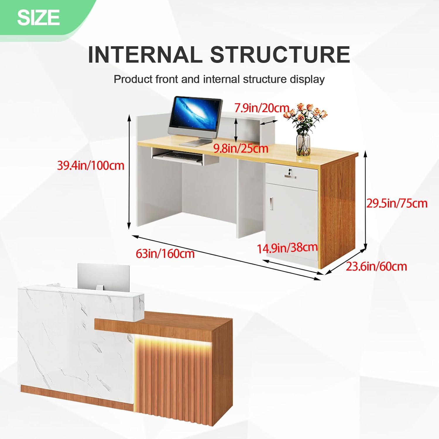 - Wide Use - The multifunctional reception room tables office reception desks cashier desk has a simple appearance and is suitable for various occasions, such as office, beauty salon, lobby, shop, small business, restaurant, clinic or other places.