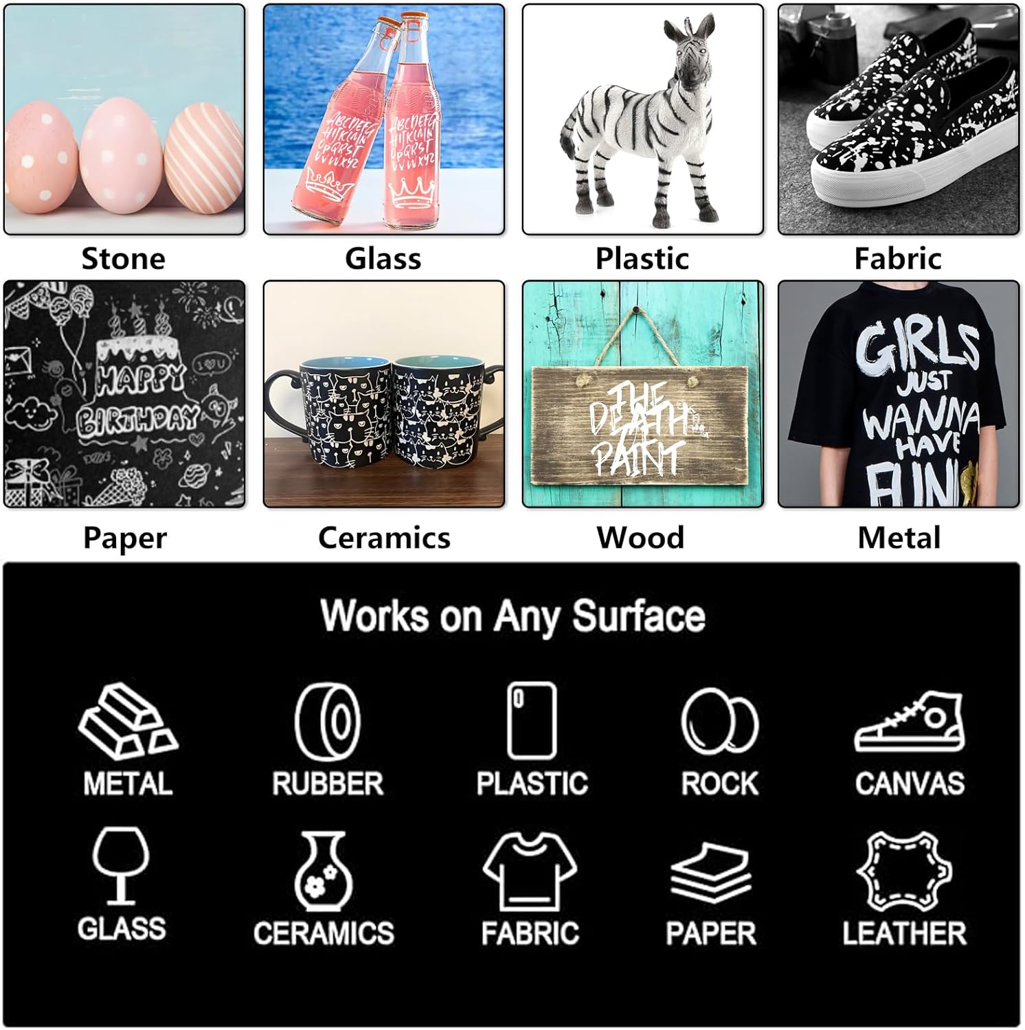 - Multi-Surface Use: This acrylic paint pen has a strong covering power, perfect for a variety of surfaces including stone, ceramic, glass, wood, fabric, metal, plastic, and more. Great for crafting, labeling, and adding creative touches to sneakers, pottery, and terracotta