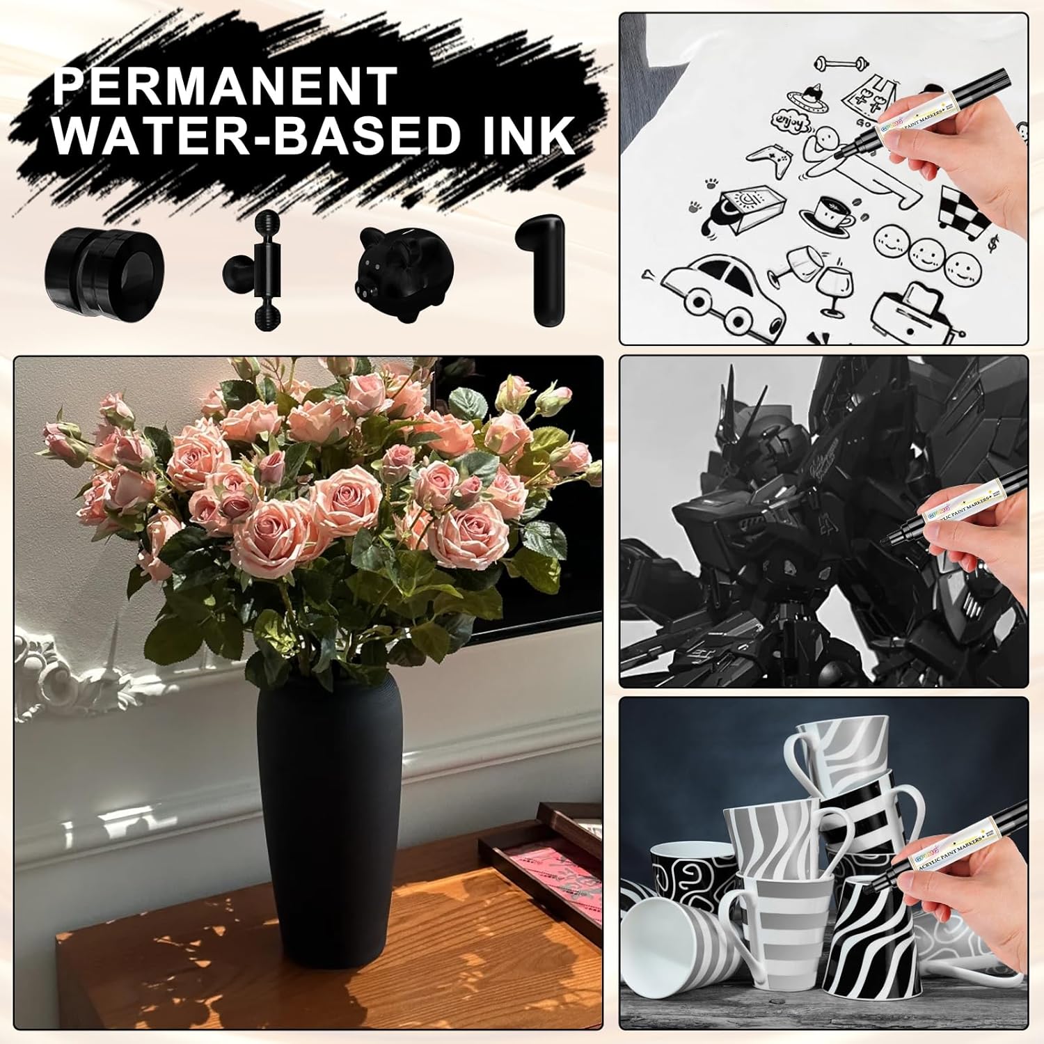 - Premium Quality & Long-Lasting: The extra-fine tip black paint pens is made with high-quality, non-toxic, acid-free, and odorless water-based acrylic ink, these markers are fast-drying, fade-resistant, and water-resistant, ensuring vibrant and durable results