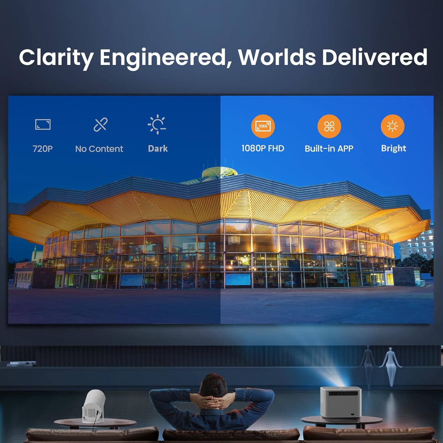 - 【Smart Hub with 1M+ Movies & Built-in Apps】Stream Prime Video, Youtube, MAX, and 100,000+ apps via Apps. Dive into a built-in library of 1 million+ movies and shows, controlled through a smart projector OS – perfect for portable projector nights or movie projector marathons.