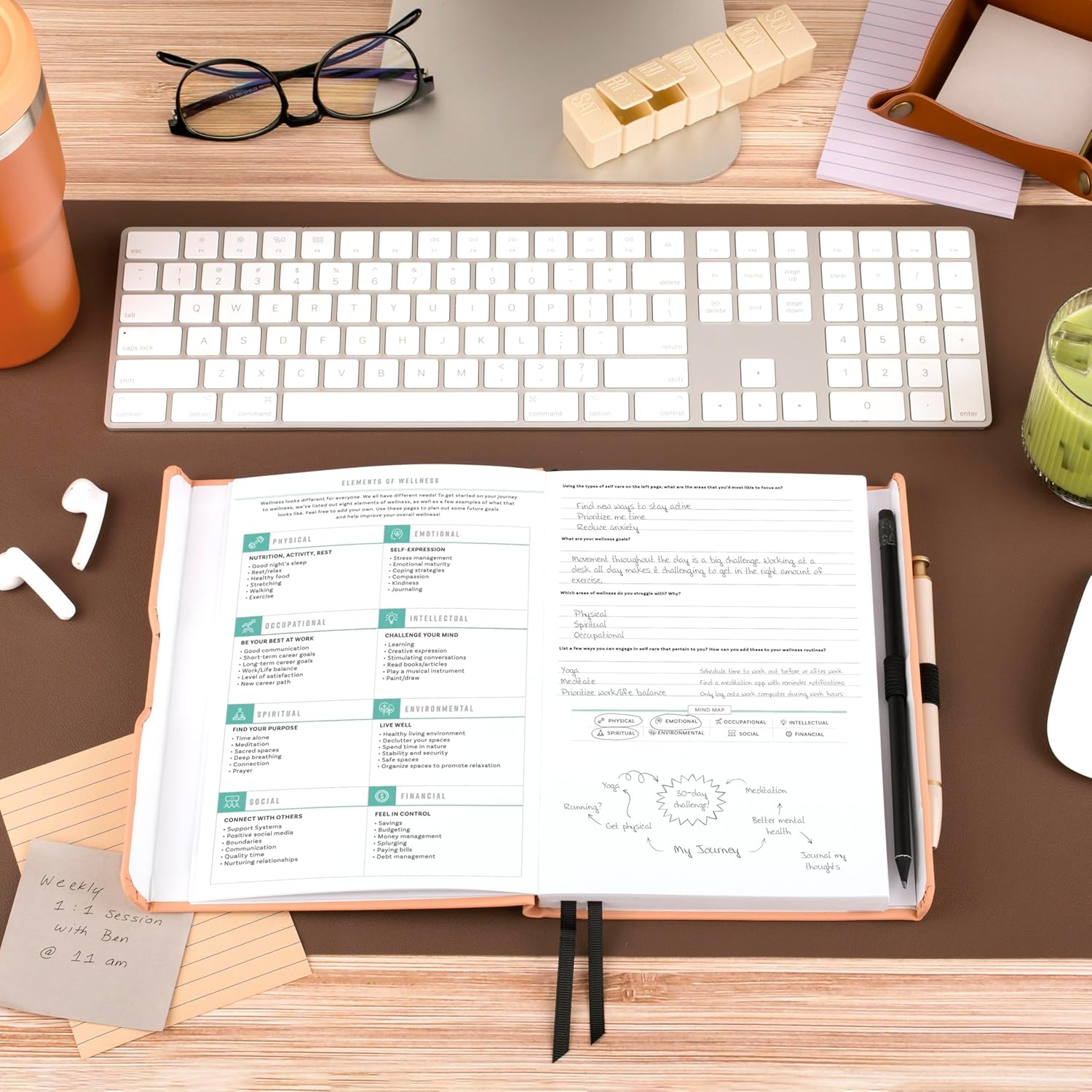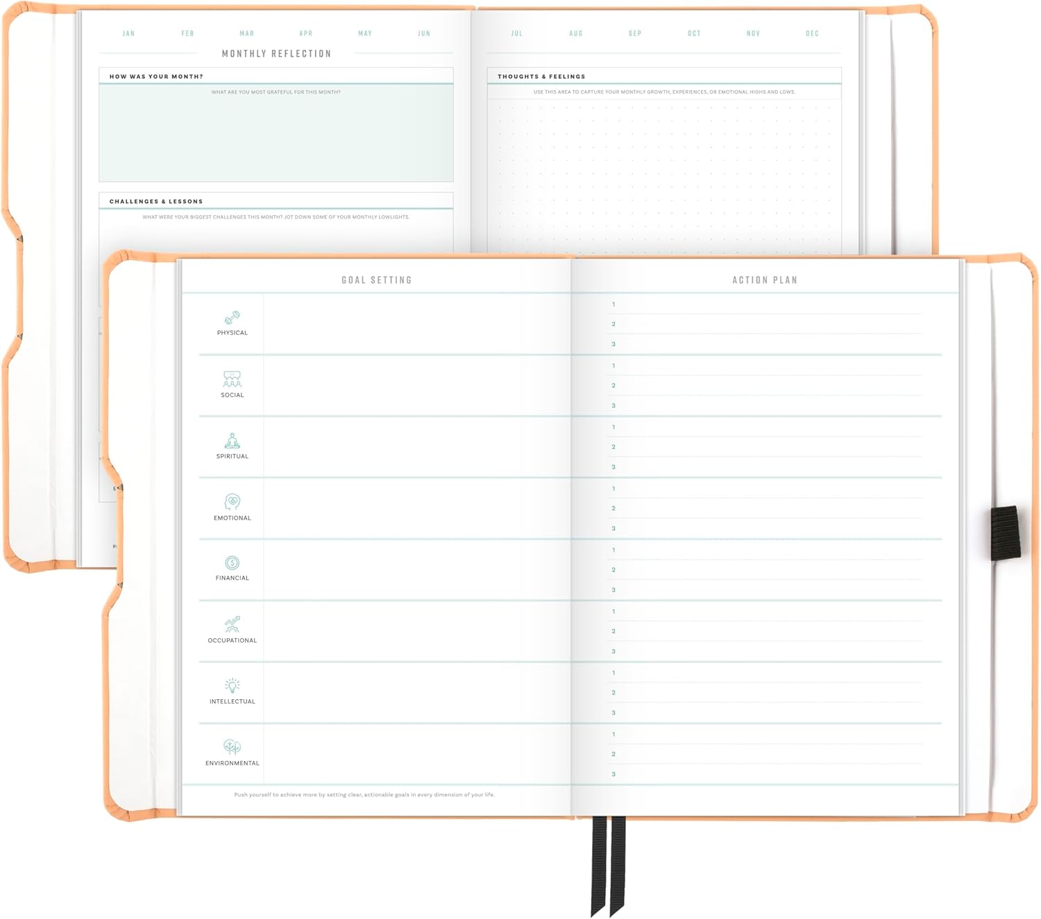 AT-A-GLANCE Foundation Wellness Planner, Undated Weekly & Monthly Tracker, Self-Care Journal for Mental and Physical Health, Hardcover, 5-3/4" x 8-1/4", Peach (FDH-200)